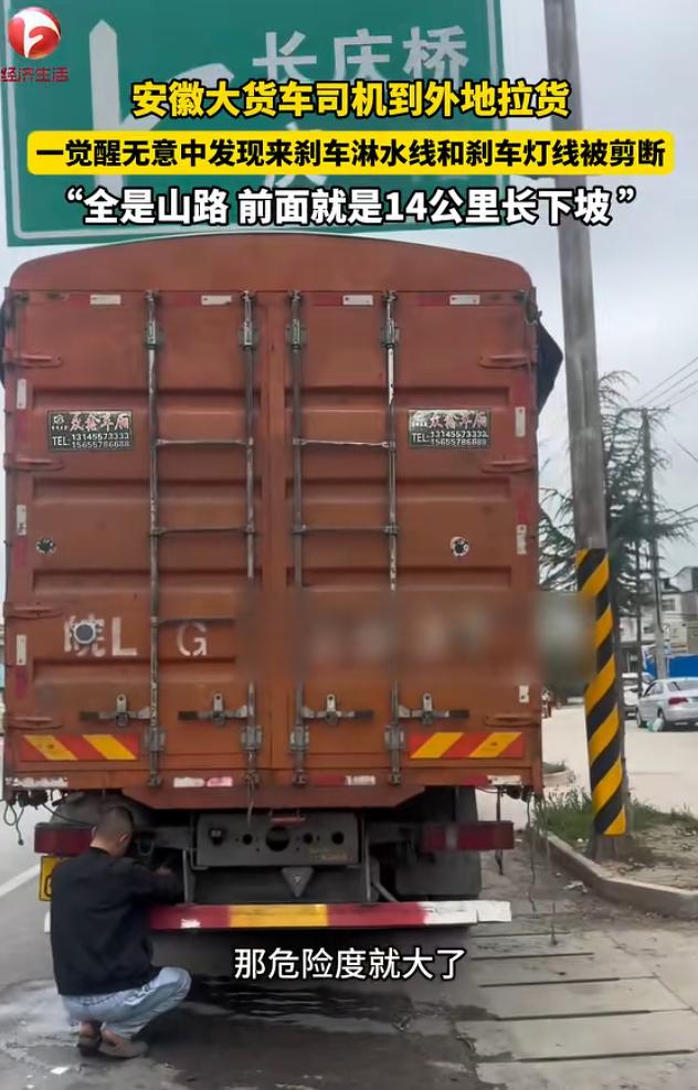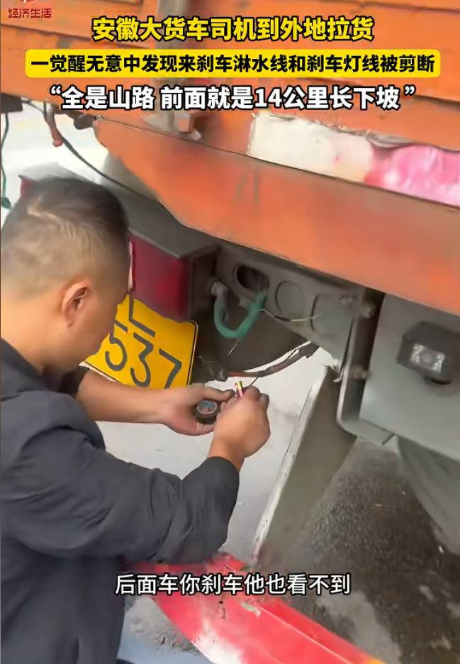 “良心坏透了!”安徽大货车司机去甘肃拉货,晚上睡在驾驶室里,不料第二天醒来后,却发现刹车淋水线和刹车灯线都被剪断了,而他马上要走就是14公里的长下坡,可监控没有拍到此人,他只能自己接上了线。网友:这要是重车,14公里没有紧急避险道,死亡百分百! 干长途货运的司机,说白了就是拿命换钱的人,风吹日晒不算啥,熬夜赶路也能咬牙扛住,真正让人害怕的,是那些看不见、防不住的人为算计。 安徽宿州有个张师傅,跑了将近二十年大货车,全国各地都去过,自认见过不少险情,可在甘肃遇到的那一回,直接把他吓出阴影,到现在想起来都后怕。 他一个人开着车往甘肃那边赶,一路十几个小时,基本没怎么合眼,人已经挺疲惫了。 等他把车开进泾川县境内的时候,天早就黑透了,考虑到安全问题,他没有随便找偏僻地方停车,而是特意挑了一个靠近交警检查点的位置,把车停下来,打算在驾驶室里将就一晚,等天亮再去装货。 他和同伴把车门锁好,窗户关紧,觉得旁边就是检查点,人来人往的,应该不会出什么岔子,就这么睡下了。夜里一切都挺安静,也没听到什么异常动静。 第二天一早,天刚蒙蒙亮,张师傅醒来后第一件事,不是急着发车,而是按老习惯绕车检查,这是他跑了这么多年一直坚持的规矩,哪怕再累也不省,这一圈,平时看着是个小动作,但关键时候就是保命的。 他走到车尾,低头一看,整个人一下子僵住了,货车刹车系统用来降温的淋水管,被人从根部直接割断,切口非常整齐,一看就是用刀故意干的,不是意外磨损。 他不敢相信,又仔细看了一遍,结果发现不只是这一处,连刹车灯的线路也被剪开了,里面的铜线都露在外面,乱成一团。 那一刻,他整个人腿都发软了,赶紧把同伴叫过来,两个人蹲在地上盯着那些被破坏的地方看,越看越心惊,张师傅当时就明白,这绝对不是谁手欠搞恶作剧,这种下手方式,就是冲着要命来的。 开大货车的都清楚,尤其是跑山路,刹车系统不是光靠踩踏板就行的,车子几十吨重,一旦遇到长距离下坡,刹车用久了会发热,严重了就会失灵,淋水装置就是专门给刹车鼓降温用的,说直白点,这东西就是关键时候保命的。 更吓人的是,他停车的位置往前没多远,就是一段很长的下坡路,大概有十几公里,全是盘山弯道,坡陡弯急,而且一路下来连一个可以紧急避险的地方都没有,也就是说,一旦刹车出了问题,连躲的地方都没有,只能一路失控往下冲。 刹车灯线也被剪断,这一点同样致命,哪怕刹车还能勉强用,后面的车辆看不到刹车信号,很容易发生追尾,特别是在山路上,连环事故的后果也非常严重。 缓过劲来之后,他第一反应就是要查是谁干的,想着调附近监控把人找出来,可他跑了一圈,连检查点周边的监控都问了,也没找到任何线索。 对方要么是刻意避开摄像头,要么就是对环境很熟,专挑死角下手,而且动作利索,明显不像第一次干这种事。 人没找到,活还得干,他也没别的办法,只能自己动手修,他找来工具,拿着绝缘胶布,一点点把断掉的管线和电线重新接起来。 那会儿他蹲在地上,手一直在发抖,心里又气又怕,差点没忍住掉眼泪,跑了这么多年车,他一直本本分分干活,从来没跟人结过什么深仇大怨,实在想不通是谁会下这种狠手。 后来他把这件事发到网上,很快引起很多人关注,尤其是同行司机,看完基本都炸了。 大家都知道这种破坏意味着什么,很多人直说,这种行为跟拿刀伤人没区别,甚至更隐蔽、更危险。 有人分析,说对方下手很有针对性,只剪关键部位,说明对货车结构有一定了解,不像普通人随便乱来,有可能是同行之间的恶性竞争,也可能是私人矛盾报复,不管是哪种情况,这种做法都太过分了。 也有人替张师傅感到庆幸,说他能活下来,真的是靠那个坚持多年的检查习惯,要是那天他偷懒一次,后果不敢想。 很多司机也因此被提醒,哪怕再累再困,出车前那一圈检查绝对不能省,特别是刹车、轮胎这些关键部位,一点问题都可能要命。 事情虽然最后没有酿成事故,但对张师傅的影响却很大,他后来也说,现在再跑长途,哪怕把车停在看起来安全的地方,心里也不踏实,晚上睡觉都不敢太沉,总担心会不会又有人动手脚。 这件事也让不少人意识到,货车司机这个行业本来就辛苦,常年在路上漂着,吃不好睡不好,赚的都是辛苦钱,可偏偏还要面对这种来自人的恶意,这比路况再差都让人寒心。 不管有什么矛盾,都不该用这种方式解决,动别人车子的关键部件,等于是拿别人的命开玩笑,一旦出事,后果不仅是一个人的问题,可能还会牵连无辜,这种行为已经不只是缺德,而是触碰法律红线。 说到底,做人做事还是得有底线,可以有矛盾,但不能害命,否则一旦出了事,谁都承担不起那个代价。 对此你怎么看? 信源:冀时新闻