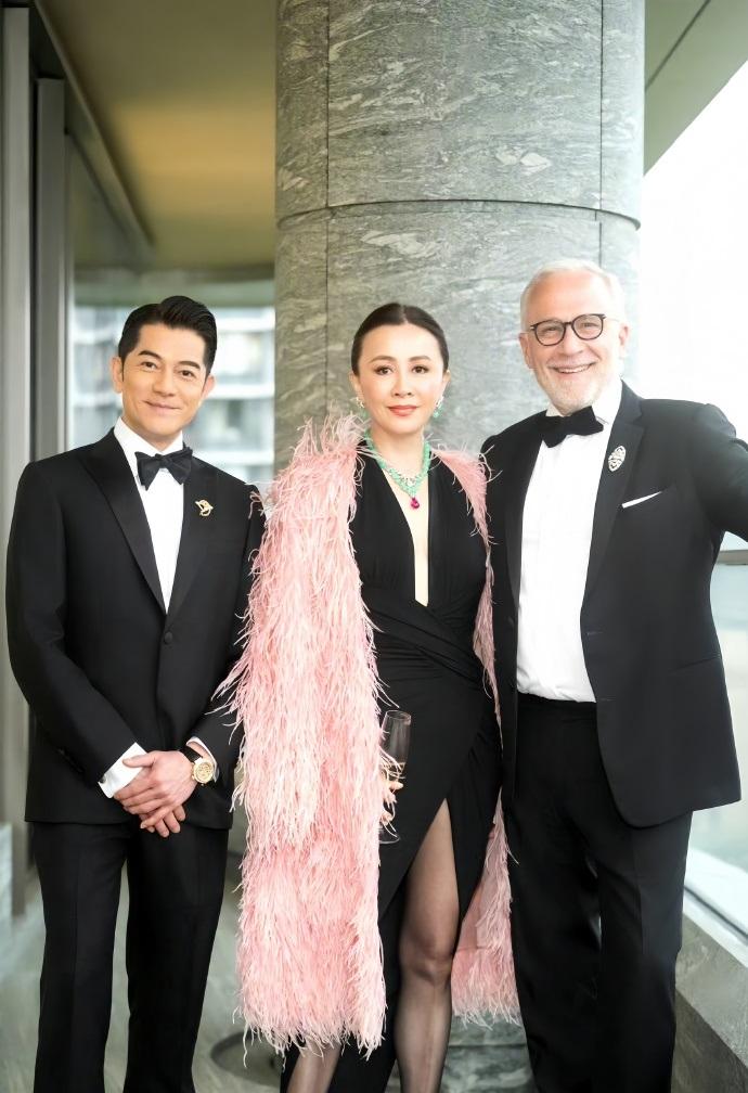 最近刘嘉玲和郭富城一起出席时尚活动,两位站在一起都很有国际大牌明星魅力,最关键的是两位似乎从未变老。 刘嘉玲穿了一件黑色的裙子,这件裙子的设计很特别,有着完美的收腰效果,能够让她秀出纤细的腰部线条。 她披着粉色的毛绒披肩,凸显出了潇洒迷人的魅力,还格外的有风度。 刘嘉玲脖子上戴着绿宝石项链,还特意把头发挽了起来,尽显奢华之美,越变越有吸引力了。 郭富城里面穿白色衬衣,外面套着黑色的西装,脖子上搭配了黑色的蝴蝶结,看起来有种风度翩翩的感觉,也很有绅士风度。