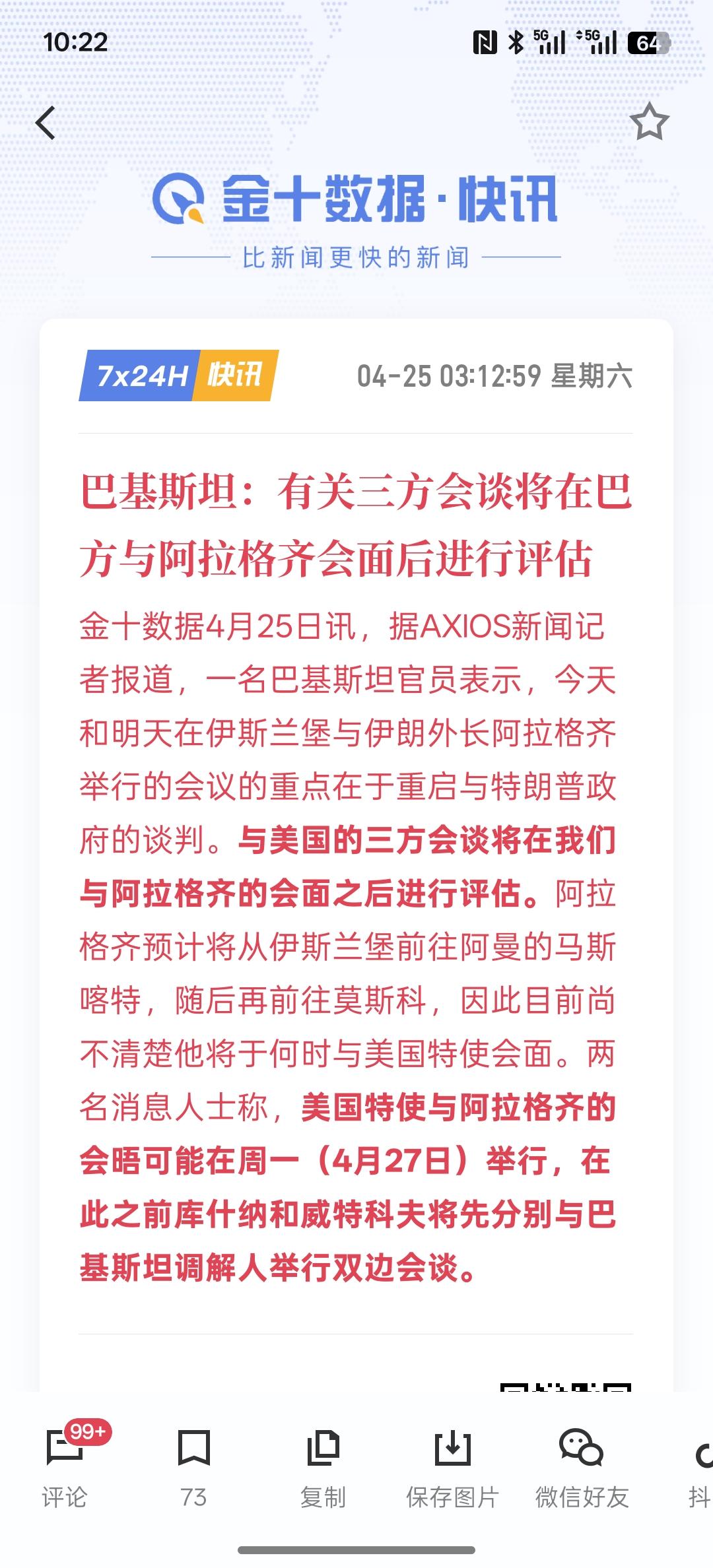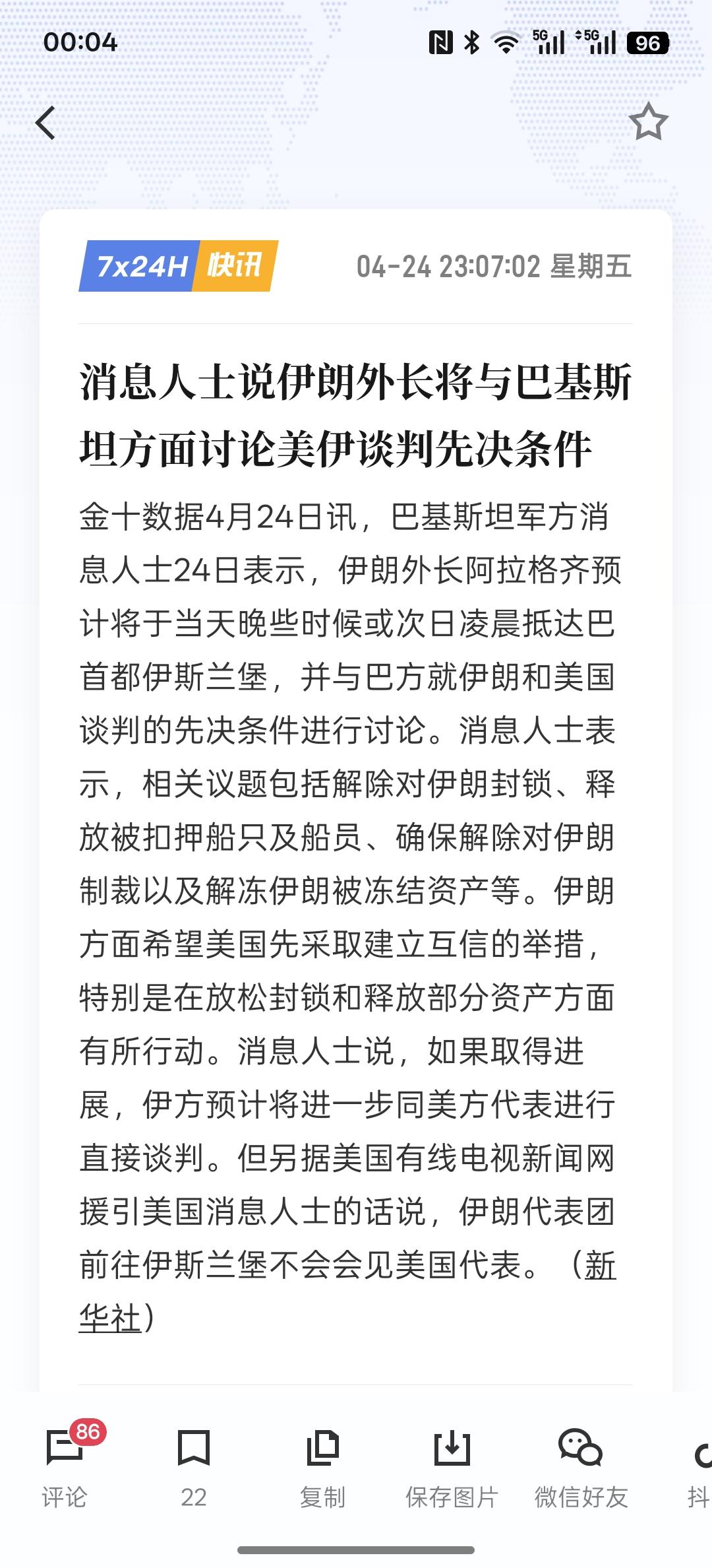 消息人士:伊朗外长抵达巴基斯坦,据多方消息,第二轮谈判即将开启!嗯,根据特朗普所派遣的特使和李旭前往巴基斯坦伊朗进行谈判,而有关三方会谈将在巴基斯坦来进行!而美国与伊朗的谈判极有可能取得突破,这也是根据伊朗所发布的消息!那接下来就看美国与伊朗能否真正实现第二轮谈判,达成谈判的突破性,能够最终达成协议,实现停火止战!对世界经济有利于发展!长期冲突不符合全世界的利益,也不符合伊朗与美国的利益!