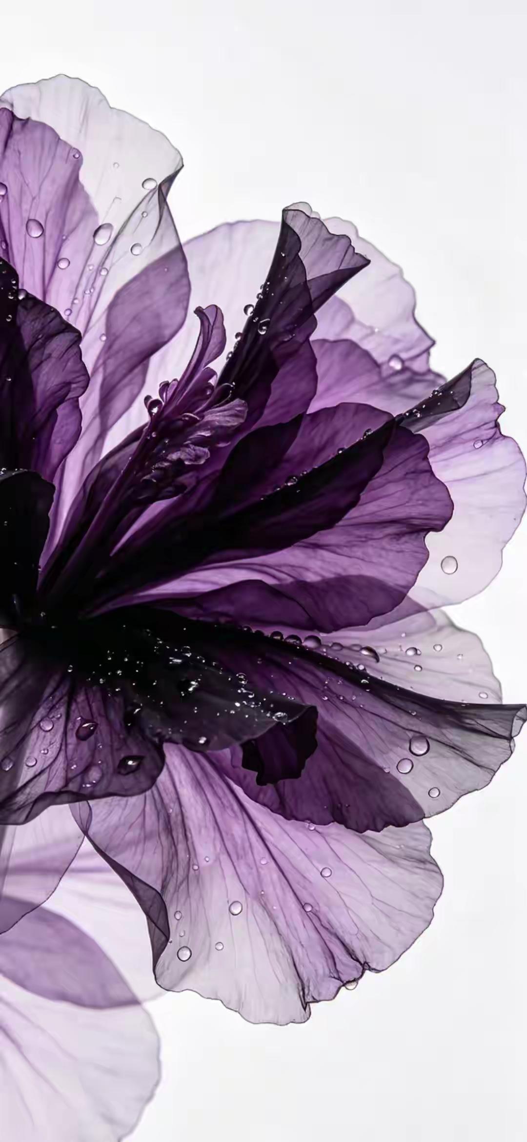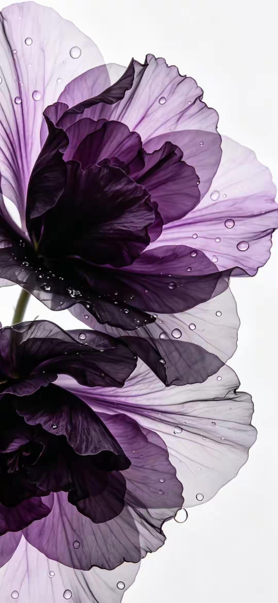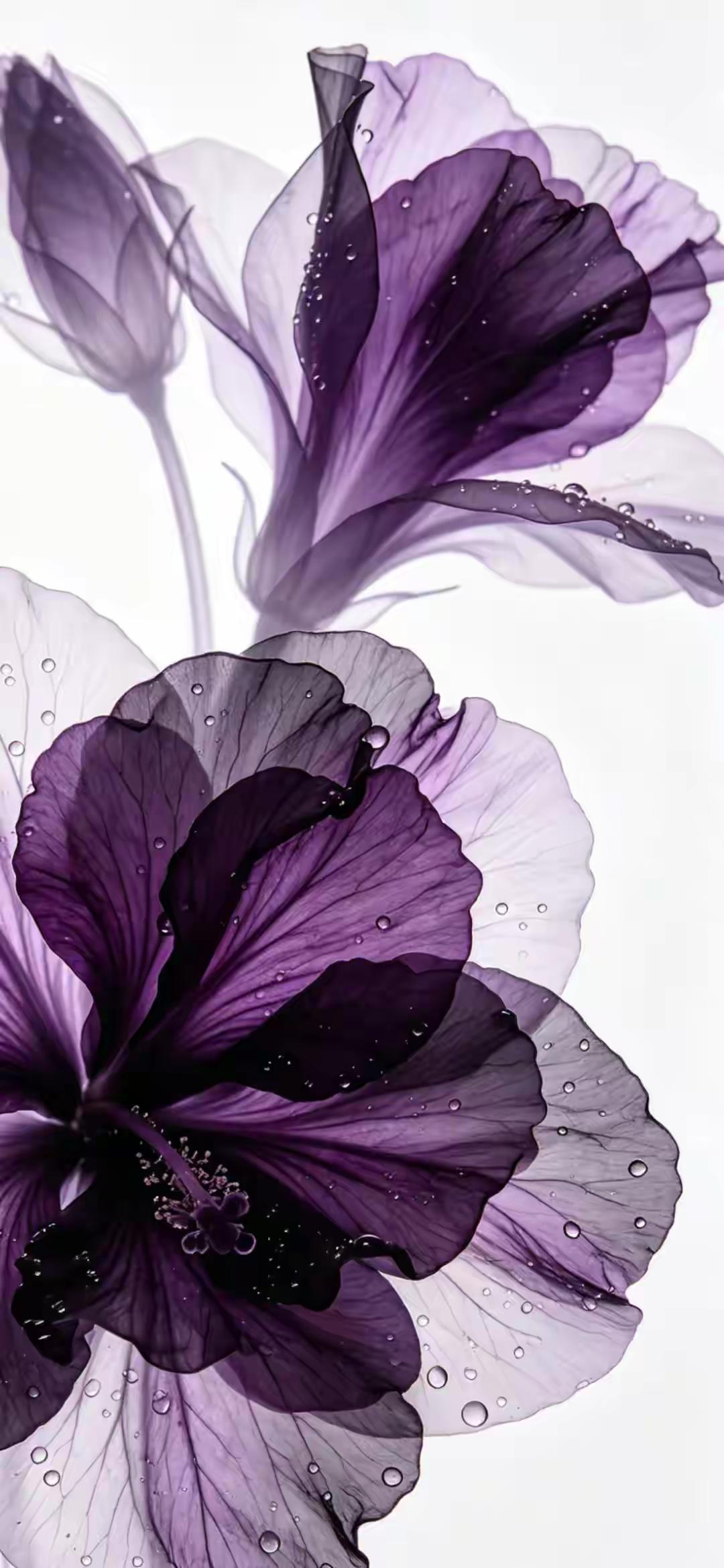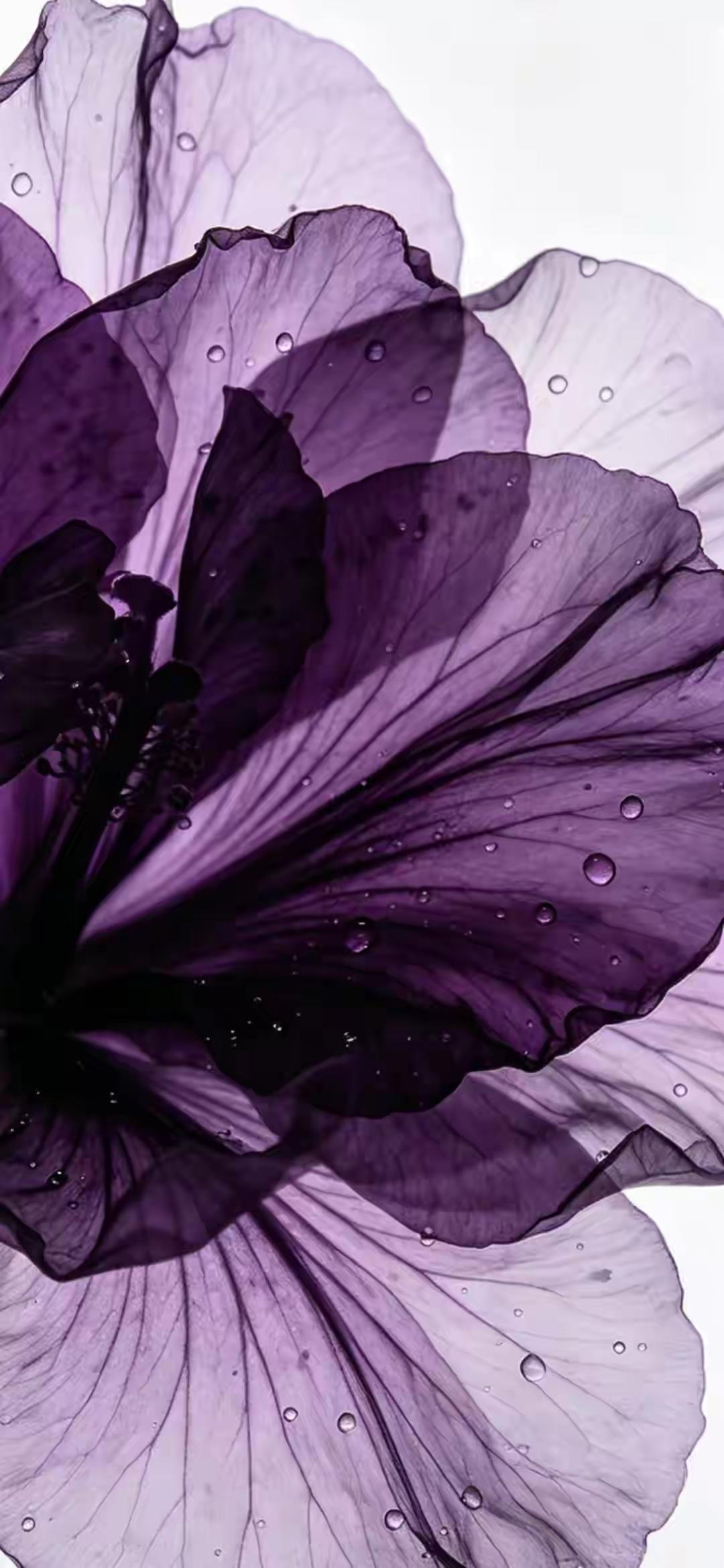 紫色系手机壁纸~紫雾般的花瓣如薄纱轻展,带着晨露的清透,在光影里晕染出深浅不一的温柔,冷调的紫调裹着朦胧静谧,美得克制又迷人