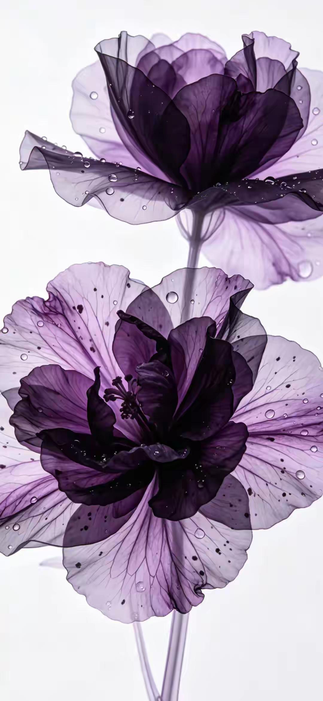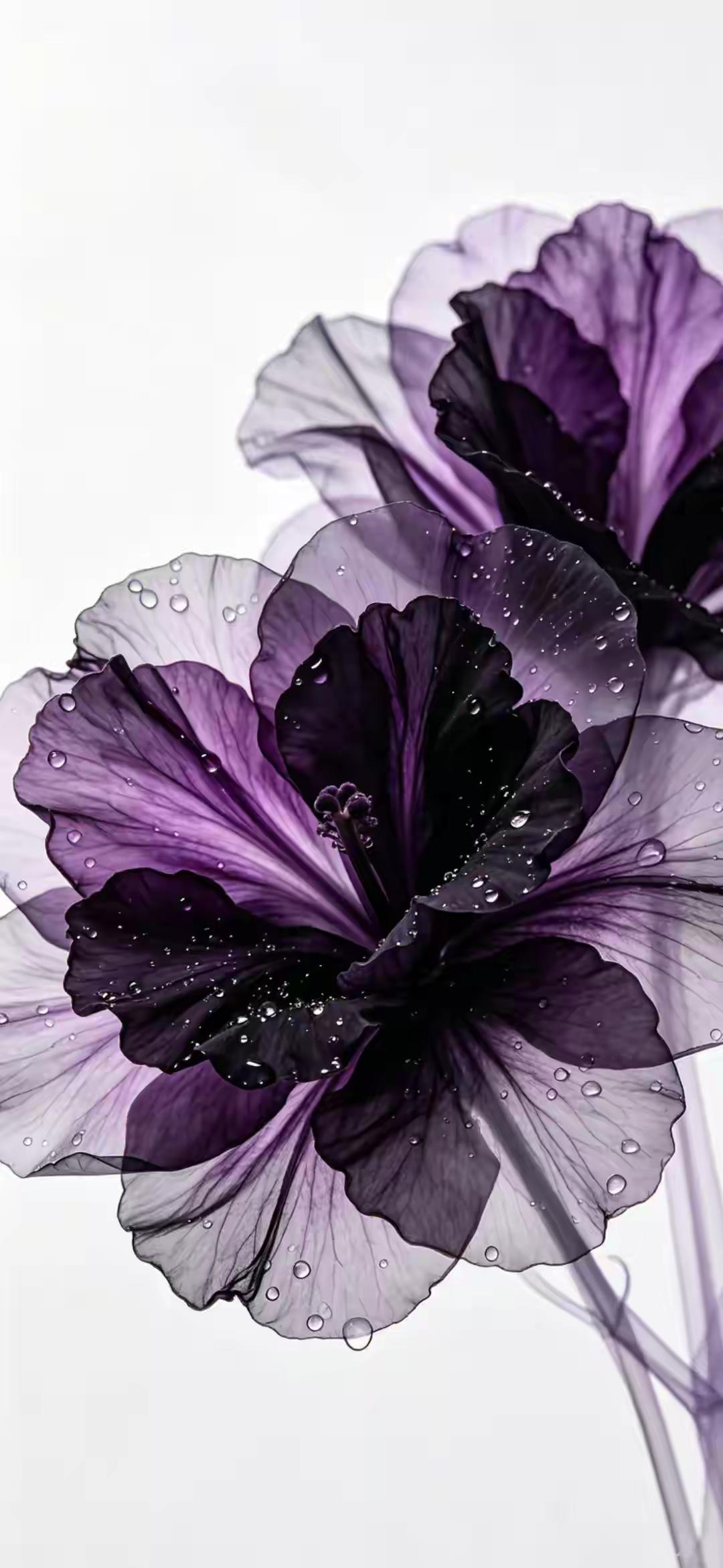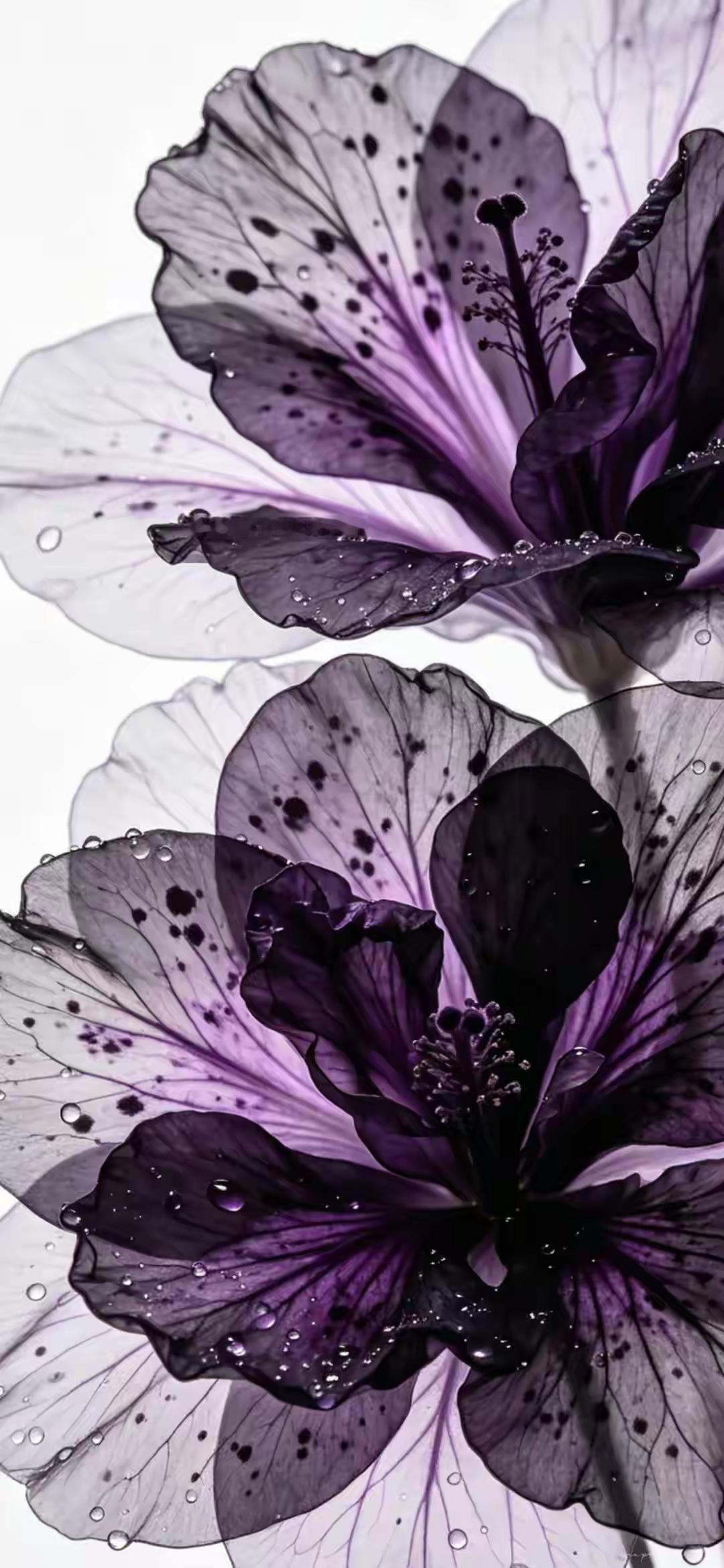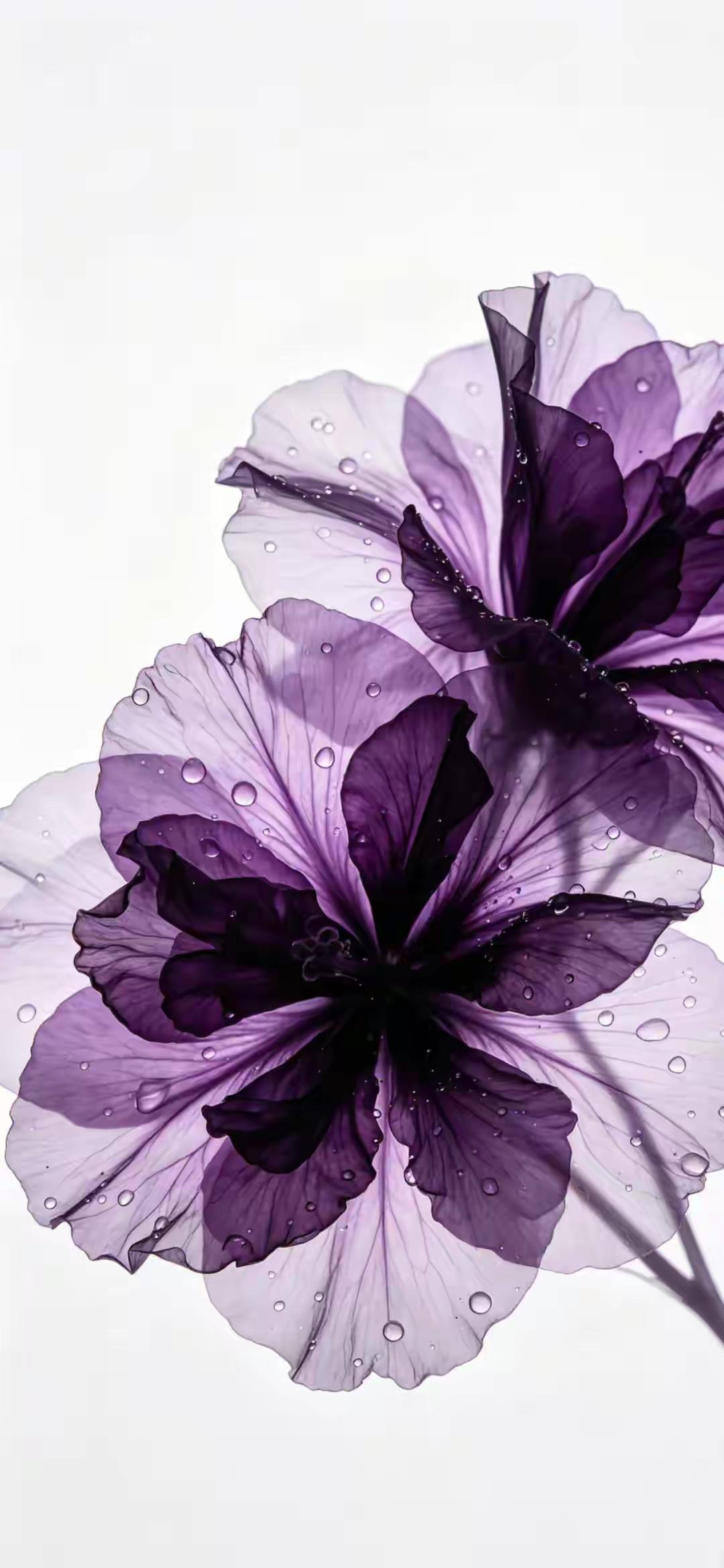 紫色系手机壁纸~紫雾般的花瓣如薄纱轻展,带着晨露的清透,在光影里晕染出深浅不一的温柔,冷调的紫调裹着朦胧静谧,美得克制又迷人