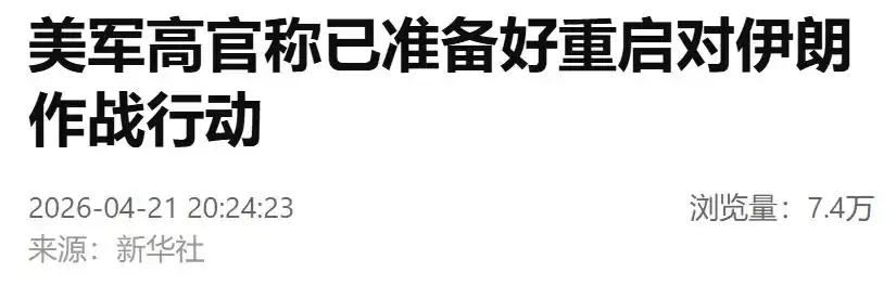 美伊均表示准备好重启作战?美军三艘航母集结,接下来究竟会怎样? 刚生效没半个月的美伊停火协议,转头就成了一张毫无约束力的废纸!说好的和平谈判说断就断,美伊双方突然集体放狠话,双双表态已做好重启作战的准备。明明停火才几天就急转直下,这波操作到底藏着多少猫腻? 谈判告吹 怪不得普遍分析都认为,美伊这场停火谈判,破裂早已是必然。早在3月24日,美国率先向伊朗抛出,包含15项内容的停战方案时,就是嘴上喊着“渴望和平”,背地里却偷偷摸摸向中东部署了第82空降师,主打一个“当面一套、背后一套”,虚伪到骨子里。不过4月8日,在巴基斯坦的斡旋下,美伊临时停火还是正式生效了。本以为双方能坐下来好好谈,结果没想到仅过3天,伊朗就直接撂话,称谈判基础已被美方彻底破坏。4月22日,伊朗更是干脆拒绝出席原定在巴基斯坦举行的第二轮会谈,至此停火协议彻底沦为空谈。可是谈判虽然是伊朗拒绝的,但核心问题却出在美国。美国一边假装谈判,一边疯狂增兵,这种“假谈判、真施压”的骚操作,换谁也得硬气拒绝。 美军加码 而且美国凭借海军实力,在当地时间4月14日,正式对霍尔木兹海峡相关海域实施封锁,截至4月22日,更是已经强制要求31艘过往船只掉头或返港,霸道得没话说。同时美军还正在中东部署有史以来“最强大”的军力,截至4月23日,“福特”号、“林肯”号两艘航母已分别部署在红海和阿拉伯海北部,还有“布什”号航母也正火速驶近中东,交接期间将形成三航母围堵伊朗的态势,场面堪称“史诗级秀肌肉”,明摆着就是想靠武力逼伊朗妥协。甚至4月22日,美军高官更是直接放狠话,称已做好重启对伊朗作战行动的全部准备。而同一天,美国国务院也赶热闹发文,要求在伊朗的美国公民立即离境。但这哪里是警告公民,分明是在给开战预热,毕竟打到现在,伊朗境内估计早就没美国人了吧。 伊朗硬刚 当然面对美国的极限施压,伊朗也没认怂,而是主打一个“你敢来,我就敢接,不服就干”的原则。4月22日,伊朗塔斯尼姆通讯社,就援引伊朗武装部队发言人的话明确表示,伊朗武装部队已做好“百分之百”的战斗准备,一旦遭到侵略,也将第一时间发动猛烈反击,并给美以侵略者最严厉的教训。其实早在3月25日,伊朗就直接拒绝了美国的停战方案,并且亮出了自己的5项核心条件,明确要求美国停止一切侵略行为,并承认伊朗对霍尔木兹海峡的主权,态度坚决不妥协。停火协议破裂后,伊朗更是直接关闭霍尔木兹海峡,亮出多款高超音速导弹,属于是用实际行动喊话美国,别拿武力吓唬人,伊朗有足够的实力,让你为自己的嚣张付出惨痛代价。 后续迷局 目前美伊局势已然进入了“剑拔弩张”的临界状态,后续走向大概率逃不出以下三点,军事对峙会持续升级,美军三航母部署完成后,也大概率会进一步加强对霍尔木兹海峡的封锁,而伊朗更会持续强化战备反击,双方在边境、海域的摩擦只会不断增多,擦枪走火的风险也大幅上升。同时全球能源和粮食市场会持续受冲击,霍尔木兹海峡作为全球能源生命线,通航反复不定,目前封锁已导致国际油价大幅飙升,更引发印度等国化肥短缺,直接威胁多国粮食生产。最后这么搞下去,谈判重启的可能性极低,美国的虚伪和伊朗的强硬,只会让双方彻底失去了信任基础。但劳师远征的美军和坚守领土的伊朗军队,又谁都吃不掉谁,短期内大概率会维持“对峙不开战、摩擦不断档”的局面。不过一旦出现任何误判,都可能引发大规模冲突。