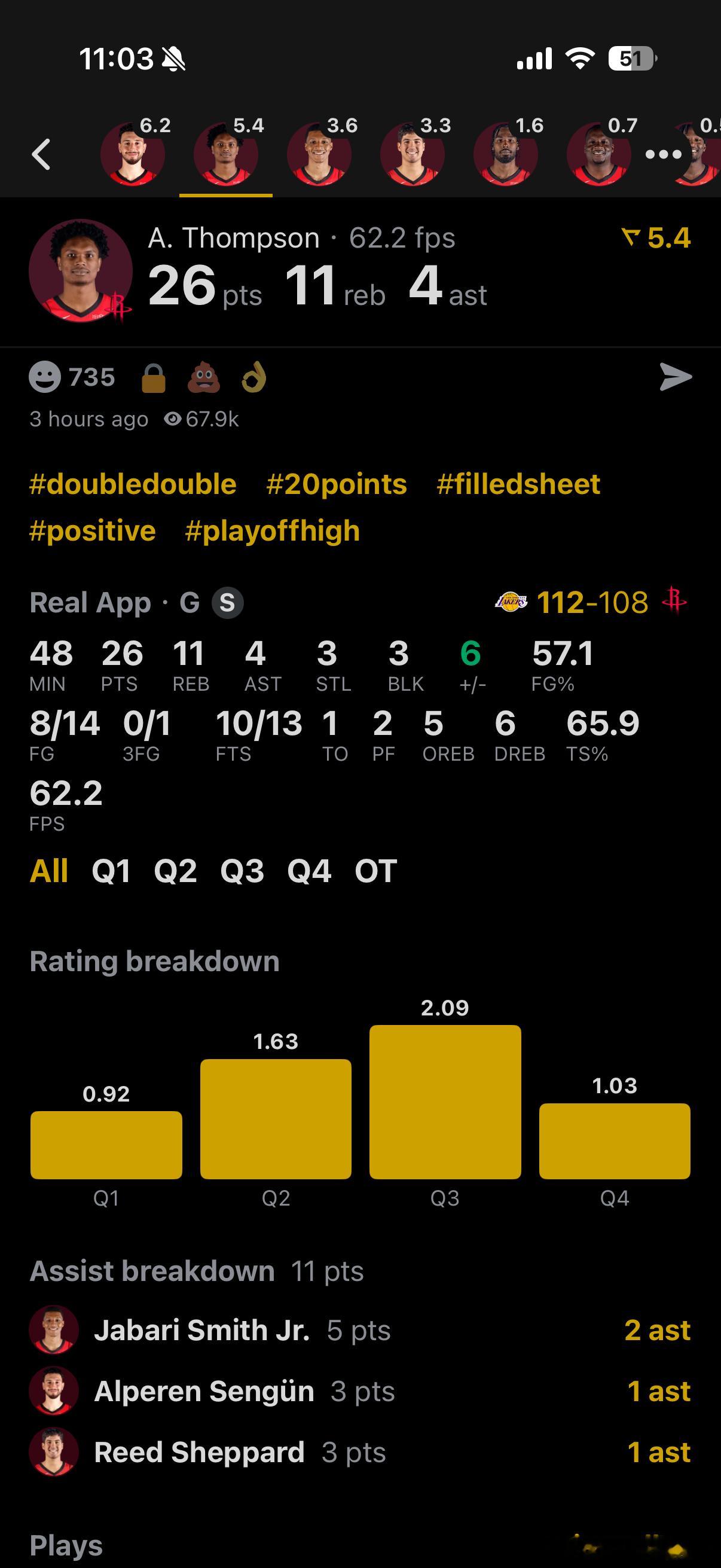 今天只有申京、阿门、贾巴里当人,其他都不是人!!!