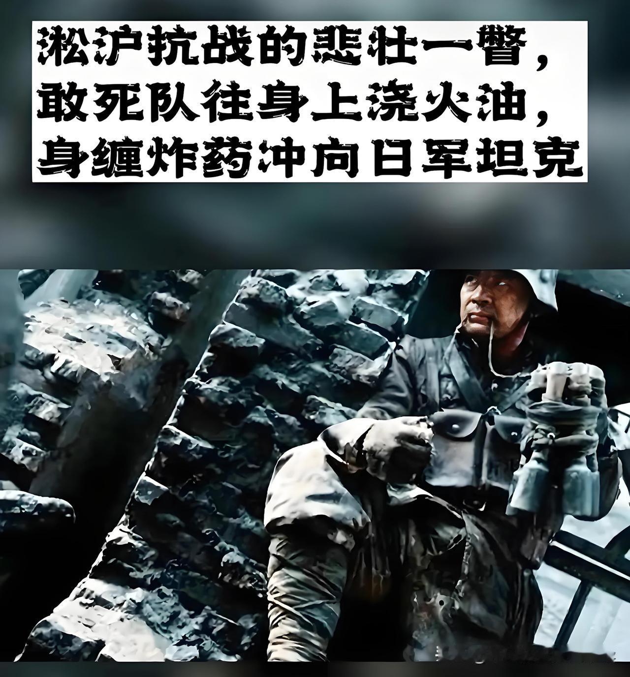 淞沪抗战,抗日英雄铁血铸忠魂 淞沪战场上抗日英雄血染山河,中国军队严重缺乏重武器,难以阻挡或消灭日军装甲车的进攻。抗日战士为了保卫疆土,以身赴死,组织敢死队身上浇透煤油、浑身绑满炸药,拉响手榴弹向日军坦克冲去。铭记先烈,抗日英雄永垂不朽!牢记历史爱我中华
