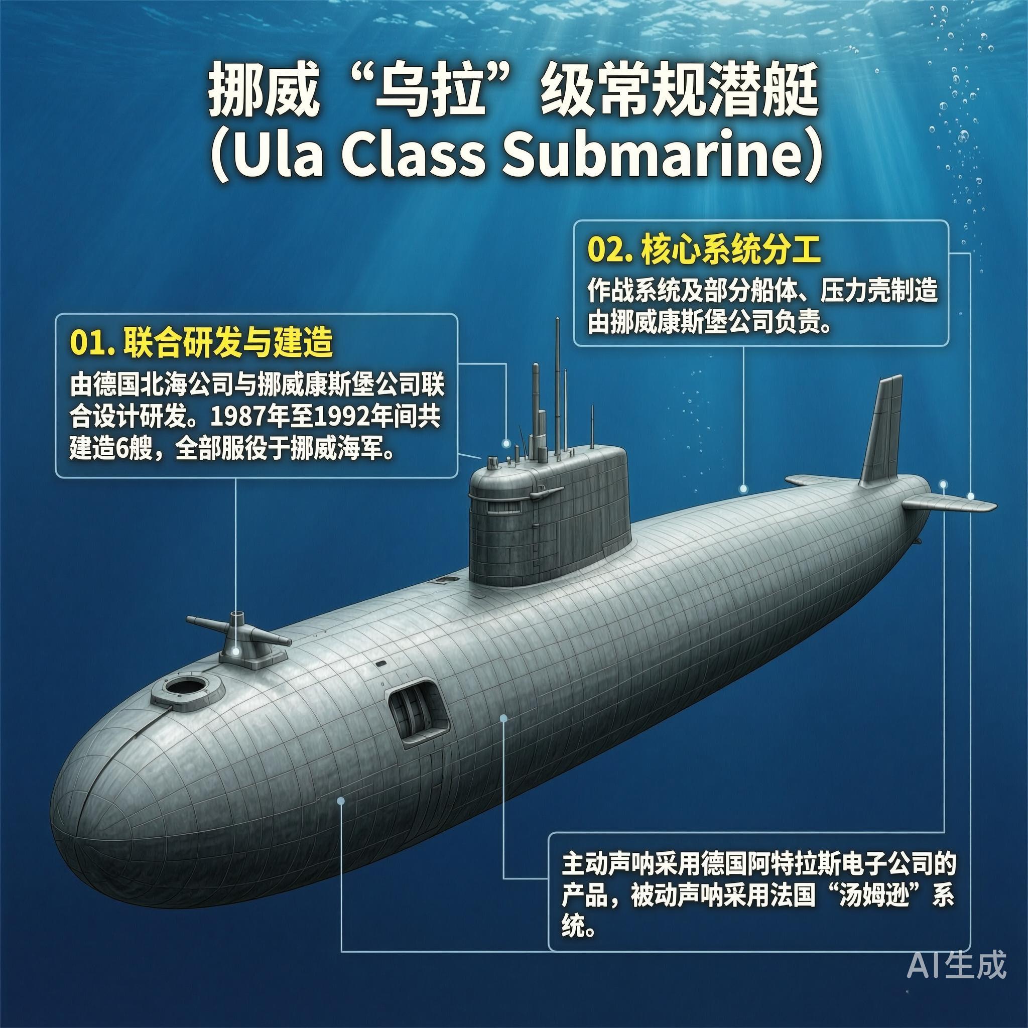 “乌拉”级潜艇(Ula Class Submarine)是德国北海公司和挪威康斯堡公司联合设计研发的常规动力潜艇,在1987年至1992年间共建造了6艘,全部在挪威海军服役。