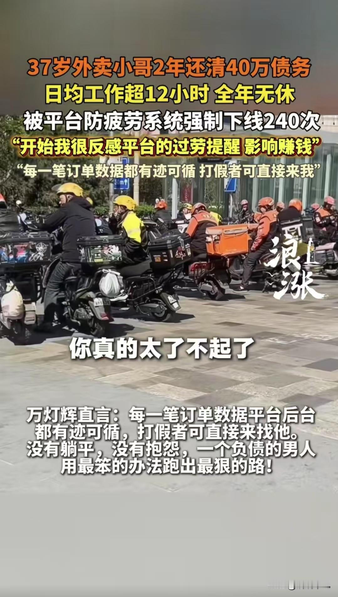 我不会是最后一个知道的吧,原来美团还会强制外卖骑手下线~ 刷到还债骑手万灯辉的新闻,我才猛然发现美团居然早就有骑手防疲劳机制了!之前一直天真以为,骑手想跑多久就跑多久,全靠自己硬熬、拼命卷时长赚钱,毕竟谁不想多接几单多赚点呢~ 像万灯辉大哥这样因为背负外债选择送外卖的也有很多案例,为了早点还清欠款真的拼到极致,一点休息的时间都不给自己,但是平台不允许员工对自己身体不负责,跑单满8小时触发休息提醒、满12小时强制下线,万灯辉大哥就被被强制下线240次~ 刚开始大哥还挺抵触,觉得耽误接单影响赚钱,这心态也太真实了吧~我才知道原来美团平台做的这么人性化呢,不赞同透支身体去挣钱的底线守住了, 努力赚钱没错,但不能拿健康硬换,这点我还是举双手双脚赞同的!