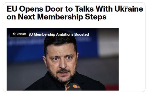 【欧盟计划在未来几周内与乌克兰启动入盟谈判——启动第一阶段的条件已经满足,彭博社