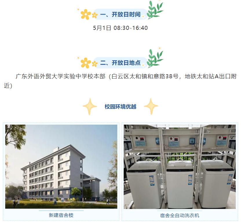 广东外语外贸大学实验中学2026年校园开放日来了,时间定在5月1日,今年的五一假是真热闹,省属、市属、区属扎堆在五一假期第一天搞开放日,各位家长你们怎么安排这个时间?
