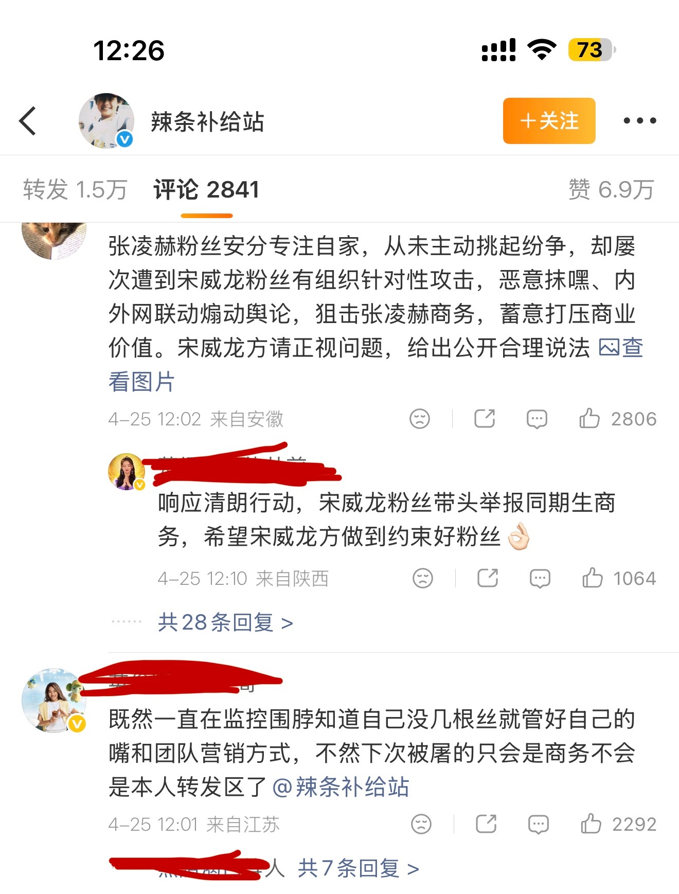 张凌赫粉丝把宋威龙官方耗给冲了。