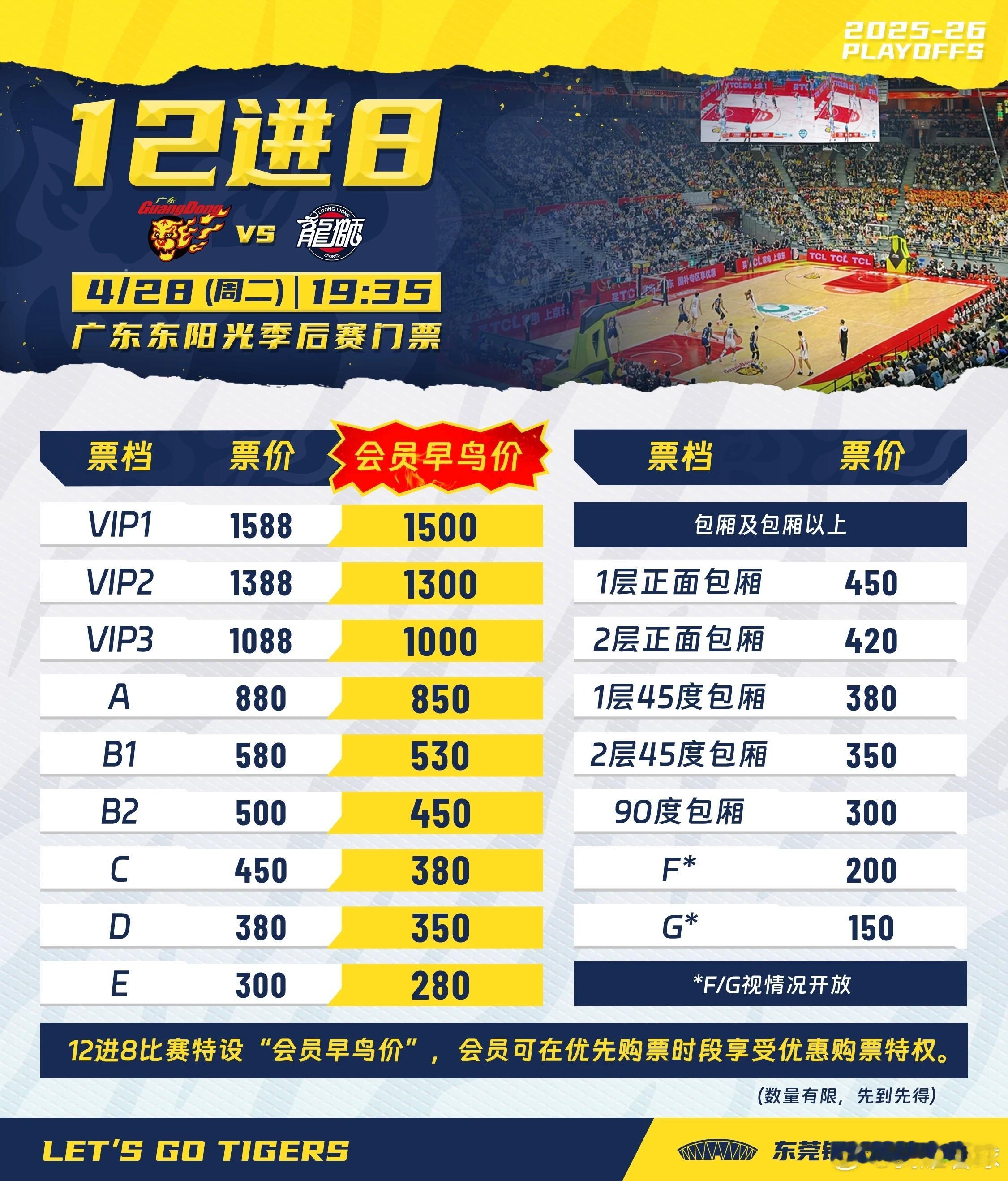 广东队季后赛门票出炉👇,首轮咱们还是握有主场优势的,希望能扭转近期颓势,加油吧!