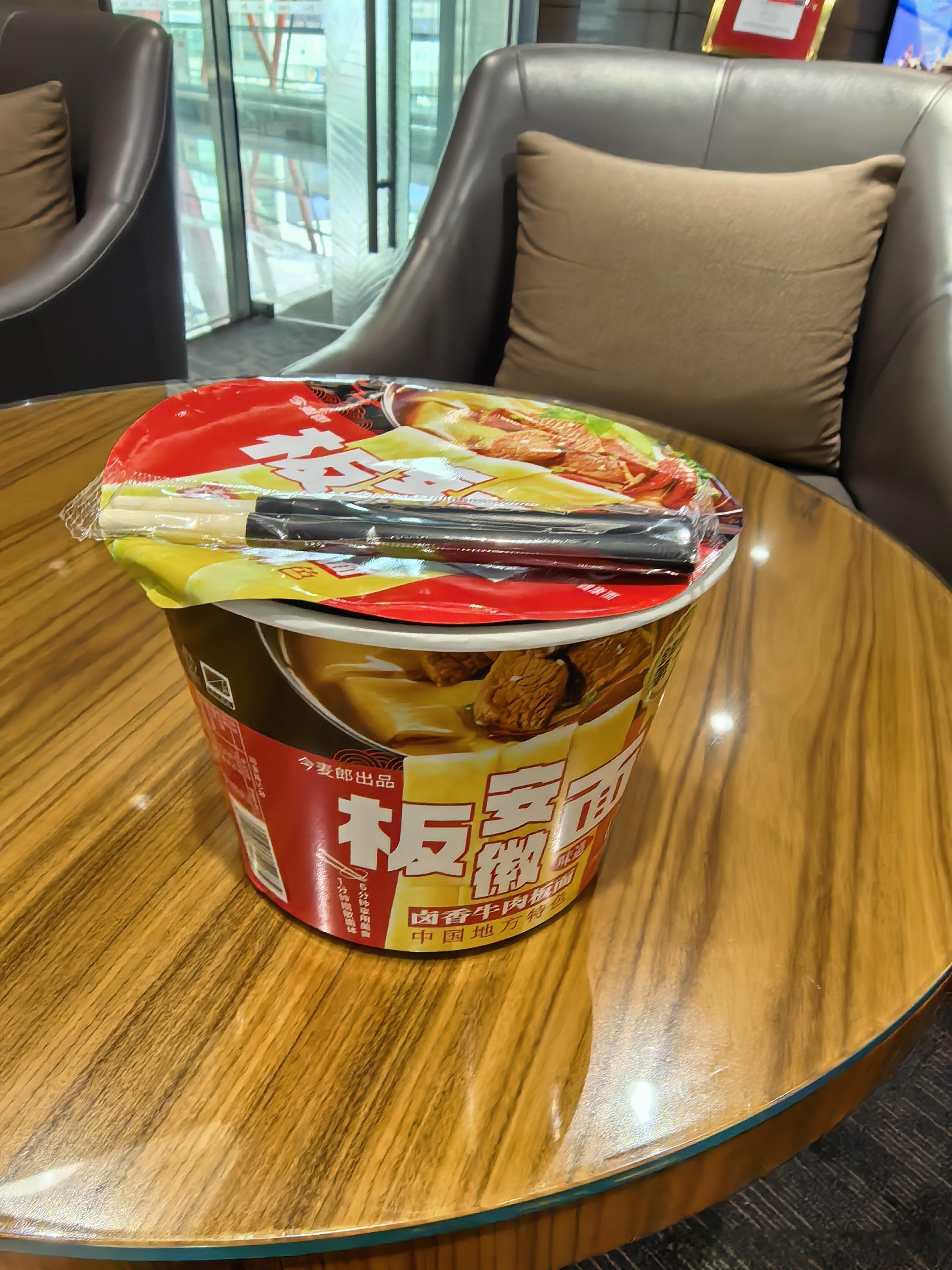 机场泡了桶泡面,然后睡着了(照片来自摄像)