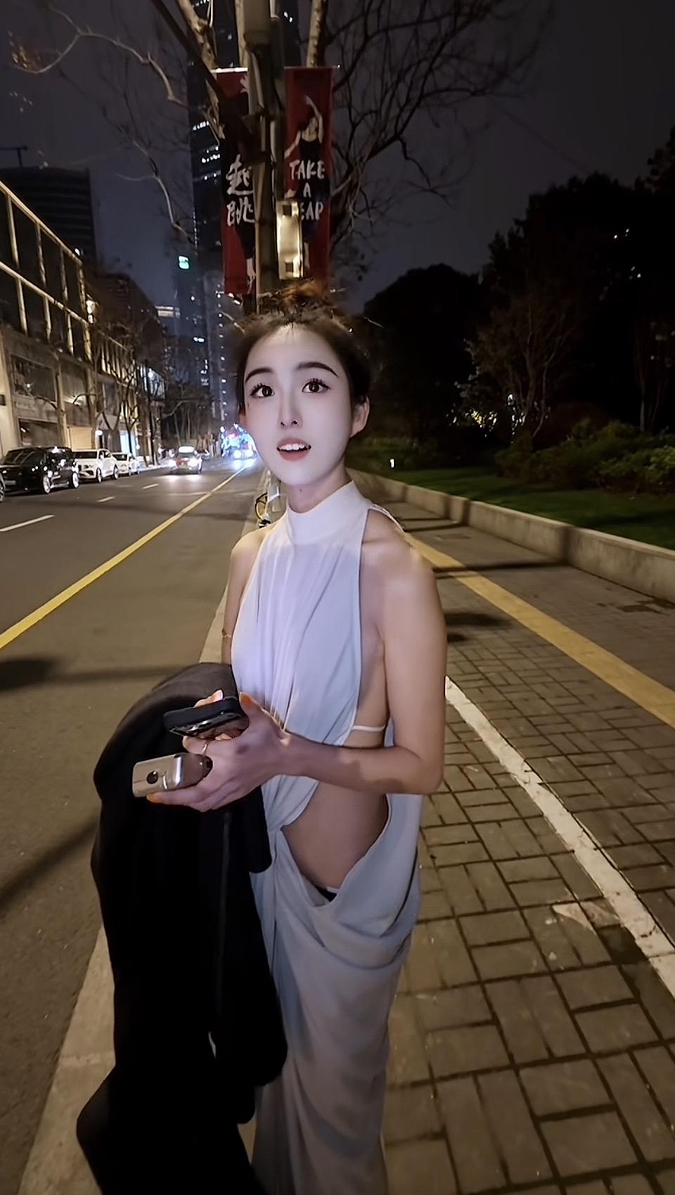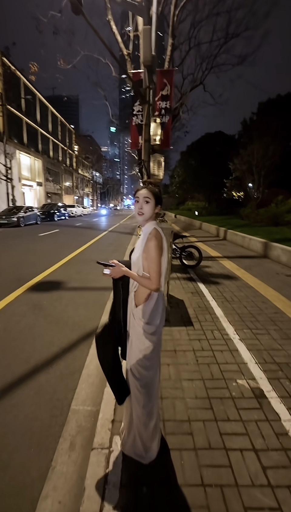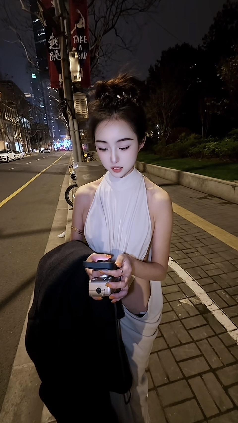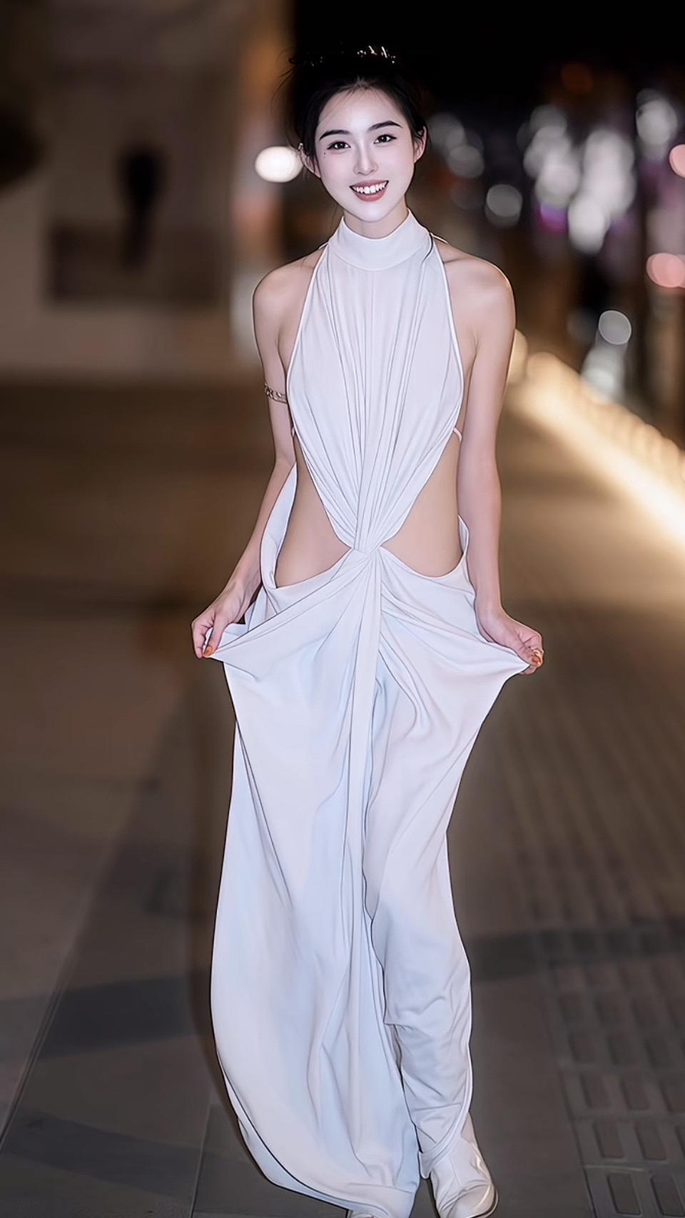 夜晚的街灯是滤镜,而你才是主角。一身白裙像从古希腊神话里走出来的,清冷又耀眼。