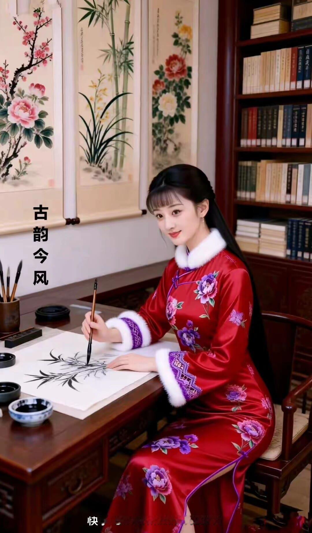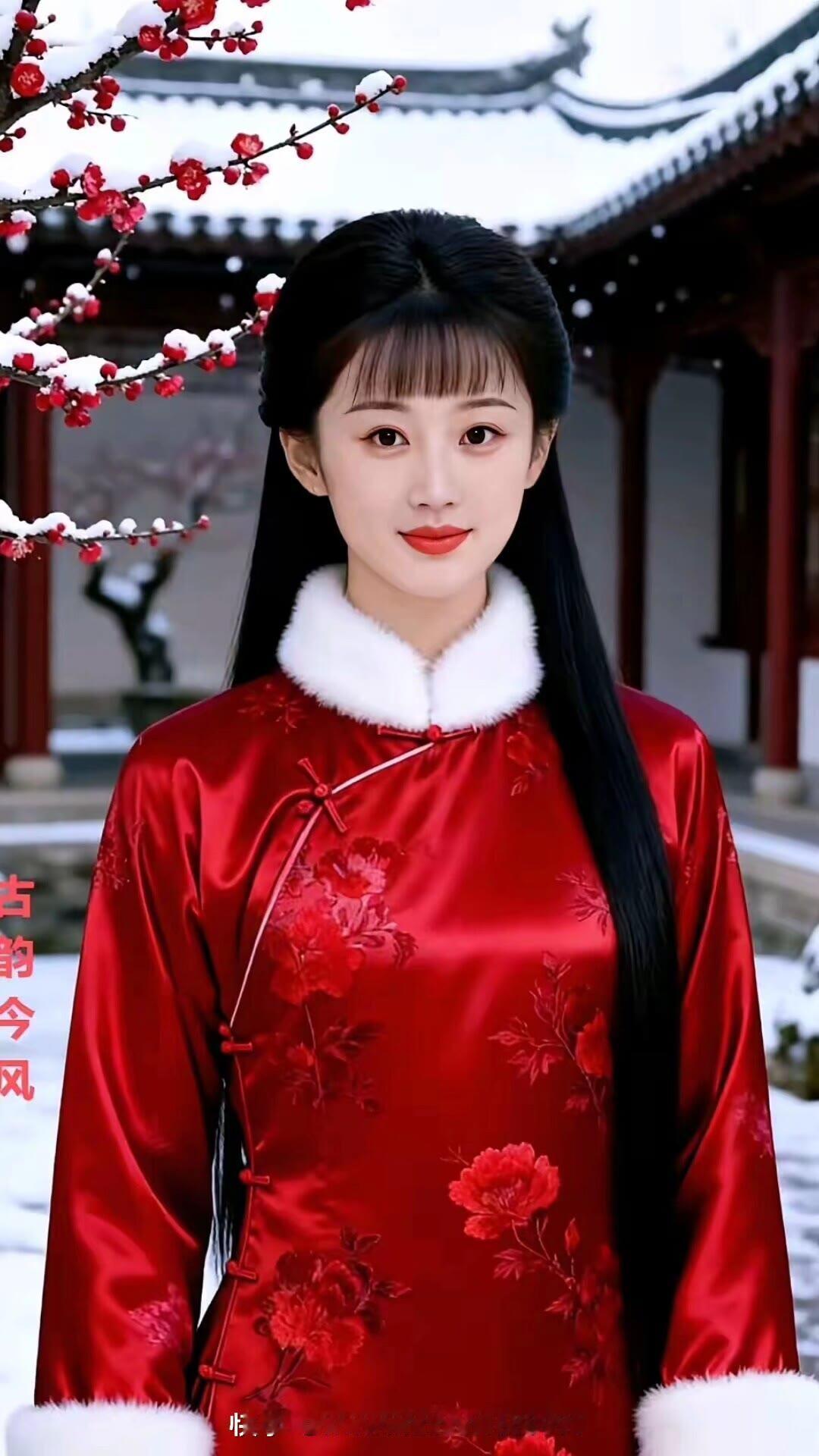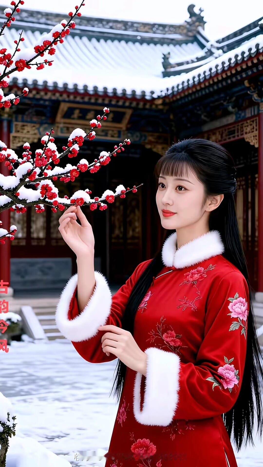 红衣美人倚雪枝,玉佩轻摇似有情。
