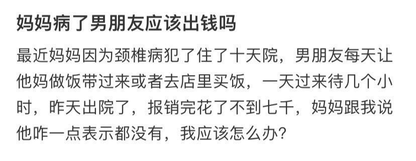 妈妈病了男朋友应该出钱吗 ?
