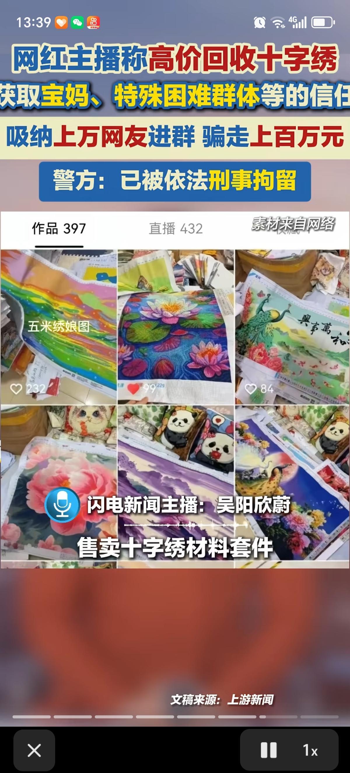一个网红主播打着“高价回收十字绣”的幌子,专门骗宝妈、想赚点零花钱的人。他在直播里吹得天花乱坠,说你买他的材料包,绣好的成品他高价收,还退材料押金。 主播一开始还小额兑现回收款,并多次晒出了转账记录,很是博取了一些宝妈、兼职务工者、中老年秀友、特殊困难群体的信任。 结果吸引了上万人进群,骗了大家一百多万!今年还以新增项目为由,额外收取了每人600元押金,没多久就解散了全部粉丝群、拉黑失联、注销店铺账号,带着钱连夜跑路了。好多人熬夜绣了大半年,到头来一分钱都拿不到,连买材料的钱都打水漂了。 现在这个主播已经被拘留了。真的要提醒大家,凡是说“包回收、高报酬”,还得先让你买材料、交押金的,全是坑!千万别信这种天上掉馅饼的好事。