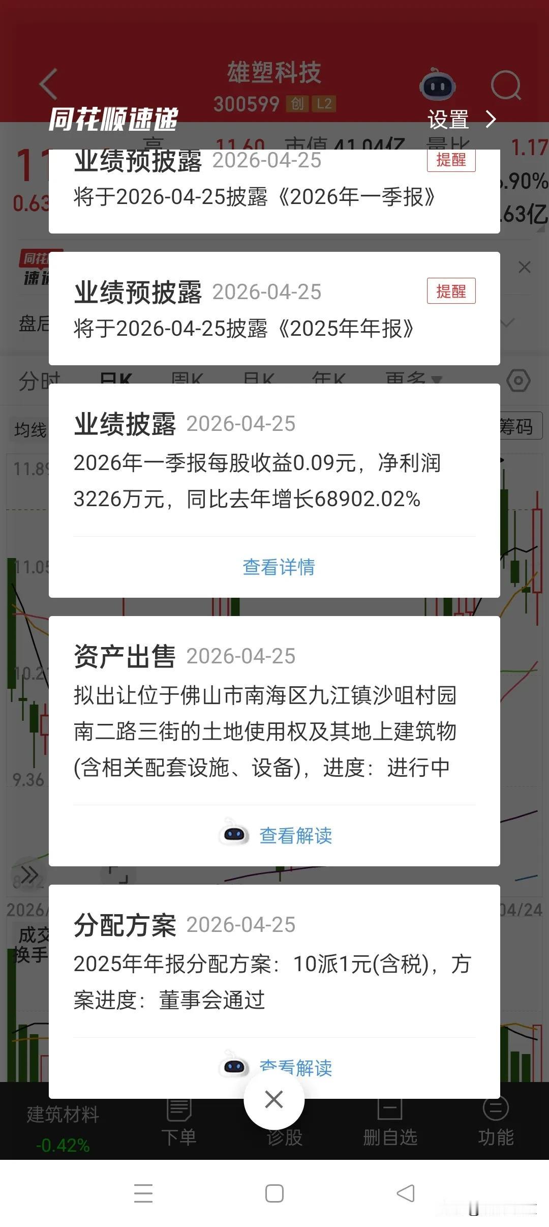 利润暴增689倍,我这个股票是不是创造大A记录了,这应该就是A股单季度业绩增幅之最,荣幸之至,昨天我还在担忧并减仓,这个小号持有2100股减了1100股,另外还有个号持有10000股也减了4000股,这也是我一罐作风,短线个股都尽量回避业绩,可以不挣运气的钱,但是不能因为运气亏损……这个业绩暴增单纯只因为上年同期利润太低,参考价值不大,就图一乐呵,好在目前走势强,下周有希望继续突破!
