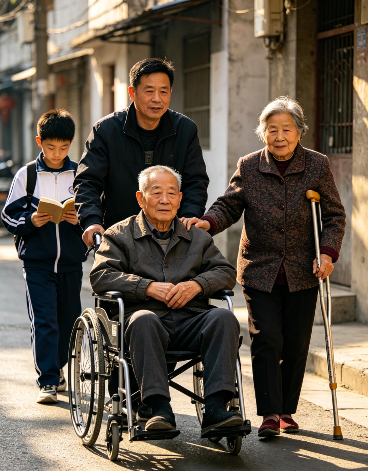 下面这幅图,就是老公现在的真实样了。 公公生病住院,婆婆腰疼需要检查。 他先把公公住院的事安排好,又带婆婆去做CT检查。 明天又到了给孩子生活费的日子,左手扶着爸,右手拉着妈,身后还有上学的闺女。 父母不能不管,孩子的生活费、学费要交,这样的生活该怎么平衡? 扶着父母没办法搬砖,不搬砖怎么给孩子交钱?哎!独生子的压力,在这一刻全显现!!!