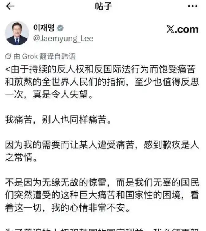 李在明怒怼以色列,“小韩最严厉的父亲”,如何让韩国突然血性? 常年被美军“拿捏”、连战时指挥权都攥在别人手里的韩国,2026年竟逆袭成国际政坛的“狠角色”!李在明敢在犹太人大屠杀纪念日正面硬刚以色列,看来沉寂70年的青瓦台突然“支棱”起来了。一系列硬刚操作,究竟是一时上头,还是另有玄机? 看来韩国人这把是选对了总统,李在明也确实成了小韩“最严厉的父亲”,甚至有望改写外界对韩国“软骨头”的印象。就在今年4月10日,正值犹太人大屠杀纪念日这一敏感节点,李在明居然毫无避讳的,在社交平台X上直接甩出“王炸”。转发了一段以色列士兵将巴勒斯坦少年踹下屋顶的虐杀视频,还直言这种暴行与纳粹屠杀犹太人、日本强征慰安妇没有区别,施暴者全是畜生。不过据法新社随后的报道,此举也瞬间引爆外交风暴,以色列外交部更是连夜紧急召见韩国驻以大使,并厉声谴责其“淡化大屠杀”,强硬要求撤回言论并公开道歉。但李在明半点不怂、寸步不让,次日再度发声怒批以色列,不愿反思自身暴行,反倒倒打一耙。更绝的是,他可是特意挑选2024年的旧闻视频,在敏感纪念日放出,堪称精准的“怼脸点射”。 血性出圈 不过2026年韩国的血性时刻,还远不止硬刚以色列这一笔。3月27日,李在明就在全军主要指挥官会议上直接拍板,最晚到2028年,必须从美军手中彻底收回战时指挥权。此言一出可直接震懵了韩国朝野,更标志着韩国正式向持续七十多年的不平等防务格局“宣战”。而且4月14日,韩国外交部还官宣向伊朗提供了50万美元人道主义援助。根据《朝鲜日报》的报道,韩国官方更是直言不讳,此次援助与霍尔木兹海峡航运、石油贸易毫无关联。那不就是纯粹看不惯以色列的暴虐行径吗,不知道的估计真以为小韩换阵营了。而且韩国更明确承诺,若伊朗平民伤亡持续攀升,将追加更多援助。甚至早在3月,韩国就已率先向黎巴嫩提供200万美元援助,可见这每一步操作,都在硬刚美以主导的地缘逻辑,这哪还是尹锡悦时期狂舔美国的做派啊。 风骨觉醒 看来沉寂多年的青瓦台,如今终于透出凛冽得风骨了。要知道自从1950年朝鲜战争爆发后,韩国军队的战时指挥权就一直被美军牢牢掌控,直到1994年,才勉强从美军手中收回平时指挥权。尽管此前青瓦台曾多次讨要战时指挥权,但都被美军轻蔑拒绝,言外之意无非是“你们根本不会打仗”,屈辱感简直拉满。尤其是朴槿惠执政时期,韩国为配合美国部署萨德系统,不顾周边大国强烈反对,最终可是付出了惨痛代价,甚至外交关系跌至冰点,双边经贸全面遇冷,就连大量关联企业都被迫退出东亚市场,相当于是举国为这一决定买单。然而2026年美伊冲突爆发后,美军却二话不说,直接抽走部署在韩国的萨德和爱国者防空系统,全然无视韩国本土安全,真是伤害性不大,羞辱性极强。 深层博弈 现在李在明的强硬,正是抓住这一关键契机,彻底打破历届韩国领导人跪舔美国的陋习。果然是绝食24天,哪怕遇刺也要带伤演讲的硬汉。不过韩国2026年的一系列血性操作,也绝非鲁莽冲动,而是精准布局的政治博弈与战略突围。从国际层面来看,提供的人道主义援助,不但能获得联合国相关人道主义机构的称赞,更能提高韩国的国际声望。国内对美军强硬立场,又精准契合了韩国民众渴望国家主权独立的民意,从而也让他的支持率大幅攀升。但更深层的原因在于,韩国早已看清,依附美国的“附庸之路”难以为继,唯有摆脱美国控制、争取自主空间,才能在动荡的世界格局中站稳脚跟。