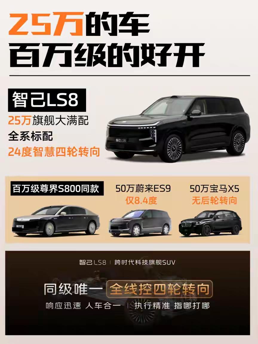 不管你信不信,这就是赤裸裸的现实,公认底盘调校第一梯队: 1. 保时捷911 Carrera(运动标杆) ,PDCC动态底盘+后置后驱,50:50配重; 2. 宝马3系(均衡之王),CLAR后驱平台,前双球节+后多连杆,50:50配重,HRS液压回弹; 3. 奔驰S级(舒适天花板),魔术车身(预扫描路面+毫秒级调悬架),空气悬架; 4. 凯迪拉克CT5(美系操控强手),Alpha后驱平台,前双球节+后五连杆,高配MRC主动电磁悬架; 5. 小米SU7 Ultra(新能源新贵),前双叉臂+后五连杆,空气悬架+CDC,扭矩矢量控制,超低重心。 2026北京国际车展,我对底盘调校有了新的认知。说实话,国产新能源堆配置、拼加速我见多了,但能把底盘做到这个份上的,智己算一个,LS8这车,我认真扒了它的底子。 以往讲好底盘,那是宝马、保时捷的专属。但这次智己搞了个“底盘平权”。25万的车,给你标配前双叉臂后多连杆、闭式空气悬架、CDC、线控制动,还有四轮高性能卡钳?这配置单放到BBA上,50万都未必给你配齐。最核心的是那个全栈自研的灵蜥数字底盘3.0,把空悬、CDC、四轮转向全协同起来,刹车不点头,过弯侧倾小。它的四轮转向是24度,ES9才8度,X5压根没有。所以5米多的大家伙,转弯半径只有4.85米,比POLO还小。 那些吹“铝多用料好”的都是糊弄人,底盘看调教。上汽几十年合资经验,工程数据库不是白攒的。智己作为上汽亲儿子,连增程发动机启停软件都自研,Momenta也是它投资的。这车真正值钱的不是屏幕和沙发,而是这套让你开起来自信满满的底盘。想买车的别光看参数,去烂路和飞坡上遛一圈,高低立判。