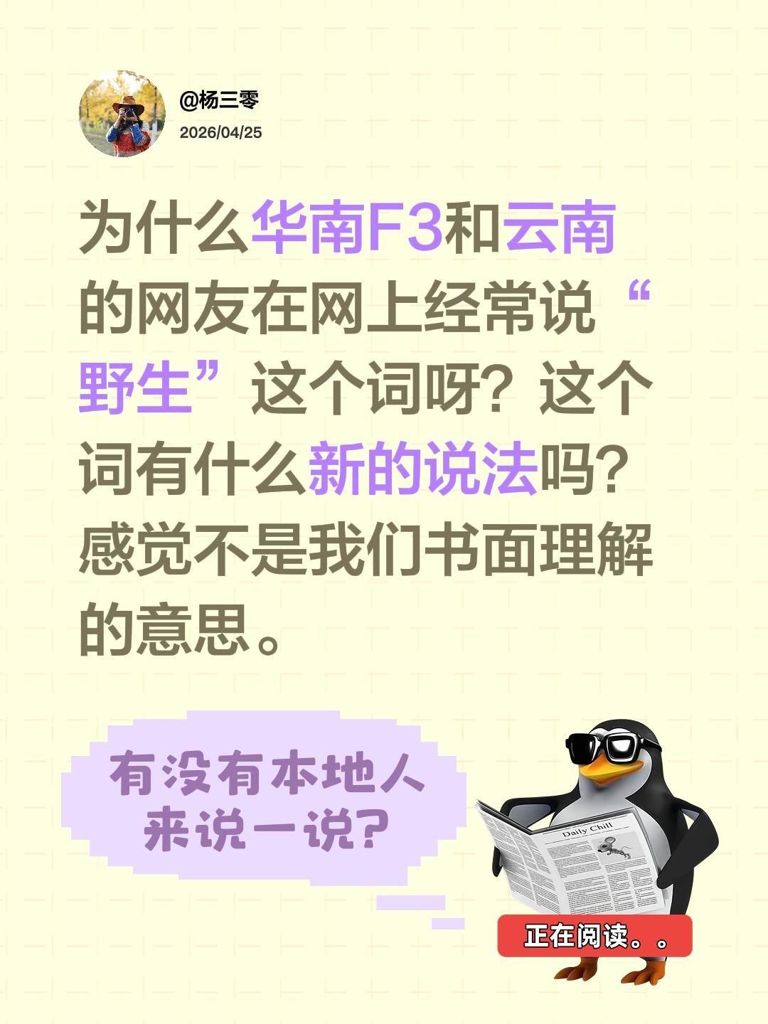 为什么华南F3和云南的网友在网上经常说“野生”这个词呀?这个词有什么新的说法吗?感觉不是我们书面理解的意思。华南f3 云南 广东 广西