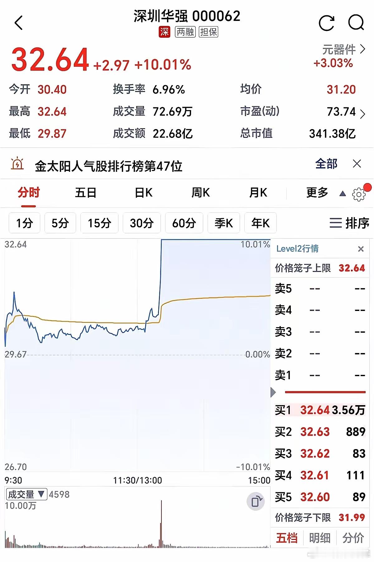 中午一点二十,大盘还没来得及眨眼。一股巨力猛地撞上“深圳华强”,不到两分钟,股价就像被绑上火箭,瞬间焊死在涨停板!