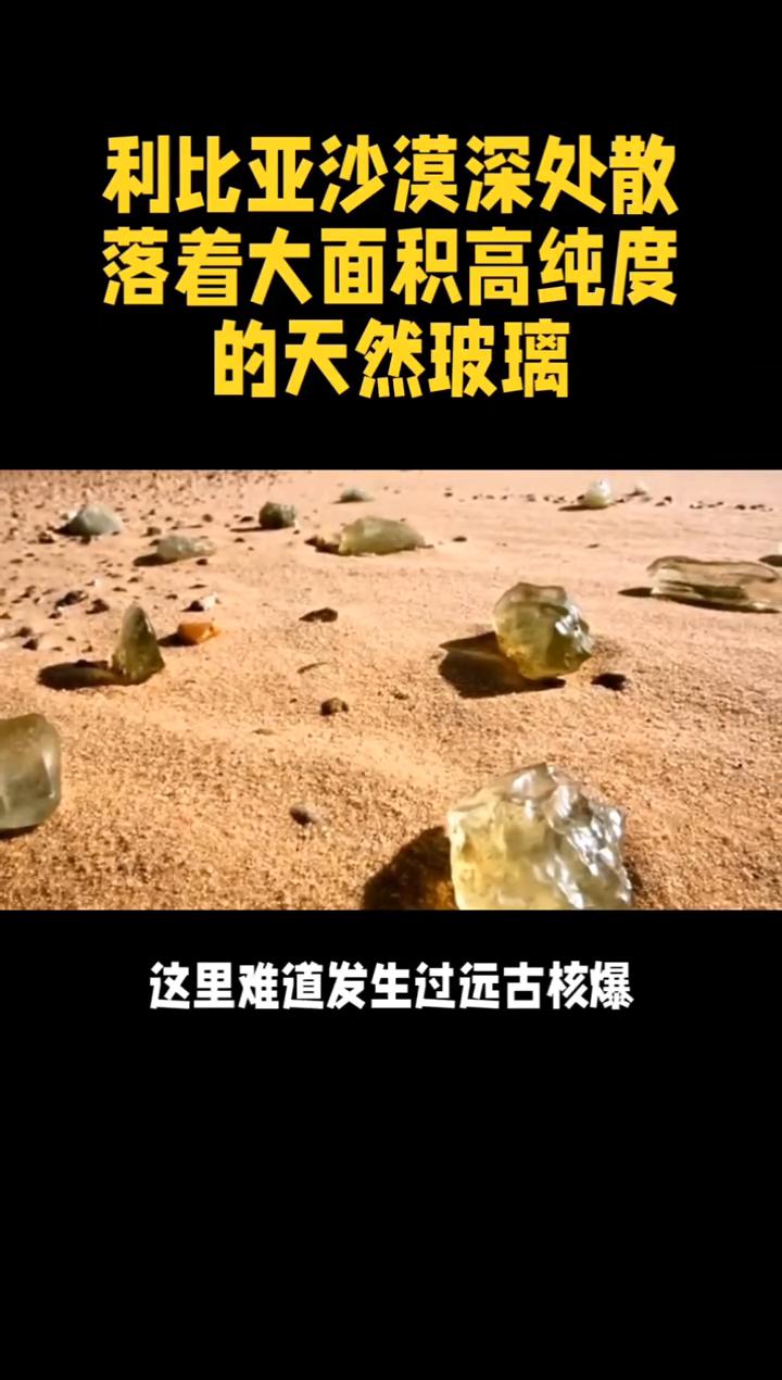 利比亚沙漠深处散落着大面积高纯度的天然玻璃。 这里难道发生过远古核爆?荒漠深处惊现绿色玻璃,真正来源超乎你想象。利比亚沙漠深处散落着大面积高纯度的天然玻璃,色泽通透翠绿,硬度极高,像是被某种毁天灭地的力量瞬间熔炼而成。古代埃及人还把它雕琢成圣甲虫饰品当作神圣之物。于是很多人猜测这里难道发生过远古核爆?一切真的如此简单吗?不,真正的答案比核爆更震撼。 地质学家在玻璃内部发现了一种极其罕见的高压矿物--雷文石。这种矿物对形成条件极为苛刻,需要瞬间达到一千六百摄氏度以上高温以及超过二十吉帕的极端压力。无论是火山活动、自然风化还是人类核爆都无法满足这个标准。 它到底从何而来?答案其实来自天外。大约两千九百万年前,一颗直径近百米的小行星高速撞击地球,精准落在如今的利比亚沙漠区域。超强撞击能量瞬间释放,相当于数十万颗原子弹同时爆炸。地表沙子被迅速熔融、气化,同时在极端高压下生成雷文石。随着撞击热浪快速退去,熔融物极速冷却,就形成了现在看到的整片沙漠玻璃。 科研人员后续进一步确认,周边发现了与年代、能量完全匹配的巨型陨石坑。因此,天体撞击才是玻璃形成的真正根源。所谓的"核战遗迹"不过是猎奇故事罢了。利比亚沙漠玻璃不是文明的灰烬,而是地球来自远古的天体撞击印记。看懂这段真相,你才算读懂大自然留下的震撼故事。