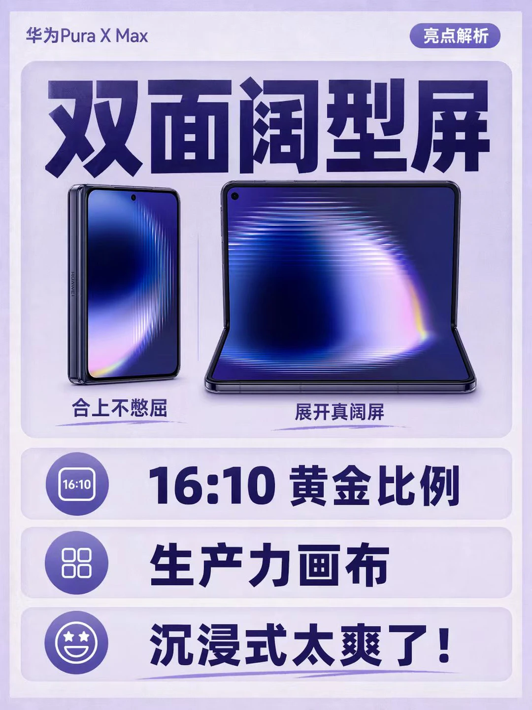 如果你受够了窄长的屏幕和影像妥协,,这台华为Pura X Max 真的建议你重点关注。它不只是在做形态创新,更是在重新定义折叠屏的基准!