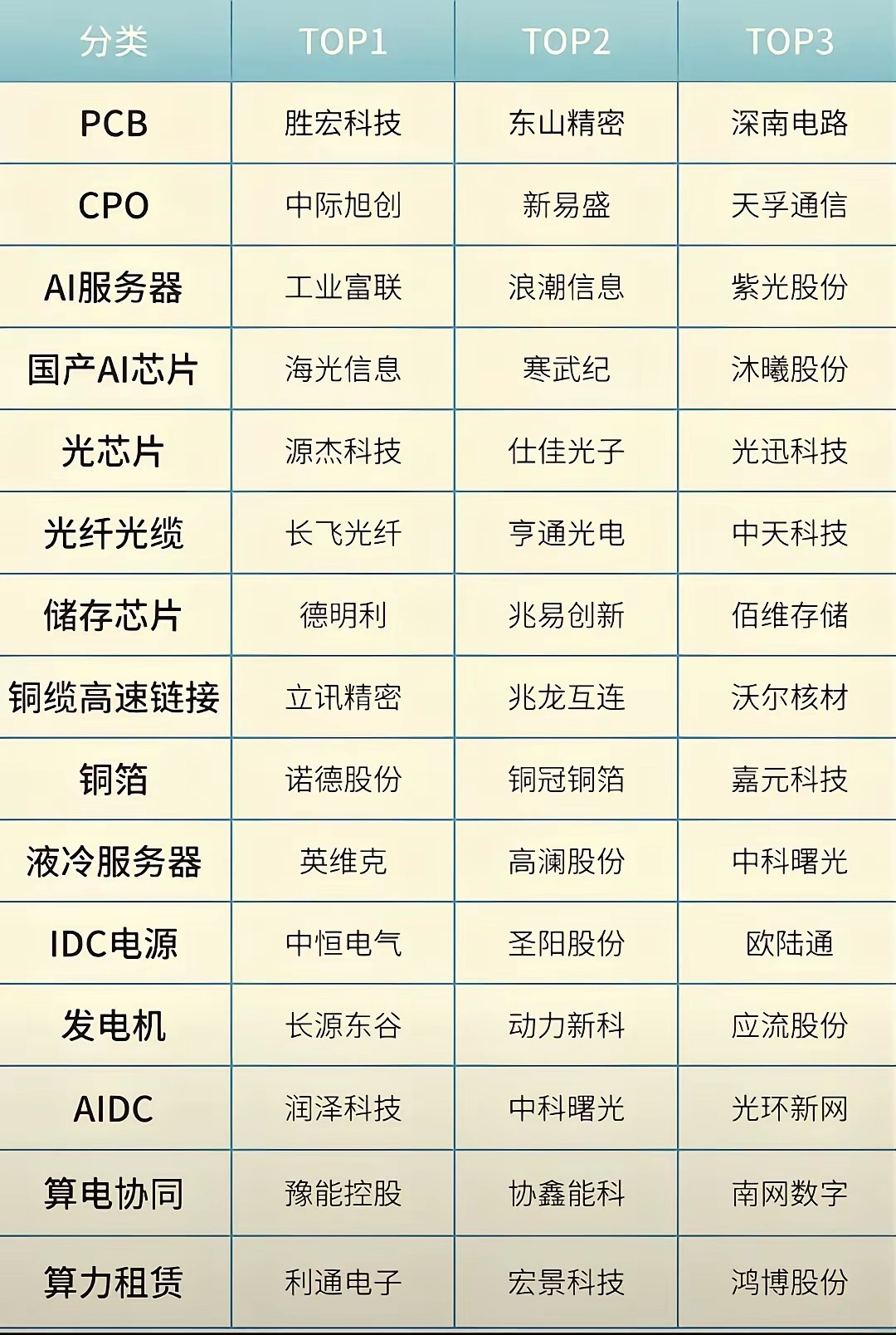 芯片排行,及概念分析如下。芯片领域包含众多分支像服务器,芯片,铜箔,这些都是缺一不可都有着自己独特的地位。各自领域都有着不错的上市公司企业,其中不乏一些优质公司和一些大市值公司,像立讯精密,中科曙光,这些都是比较有名的高司,更多详情如下。