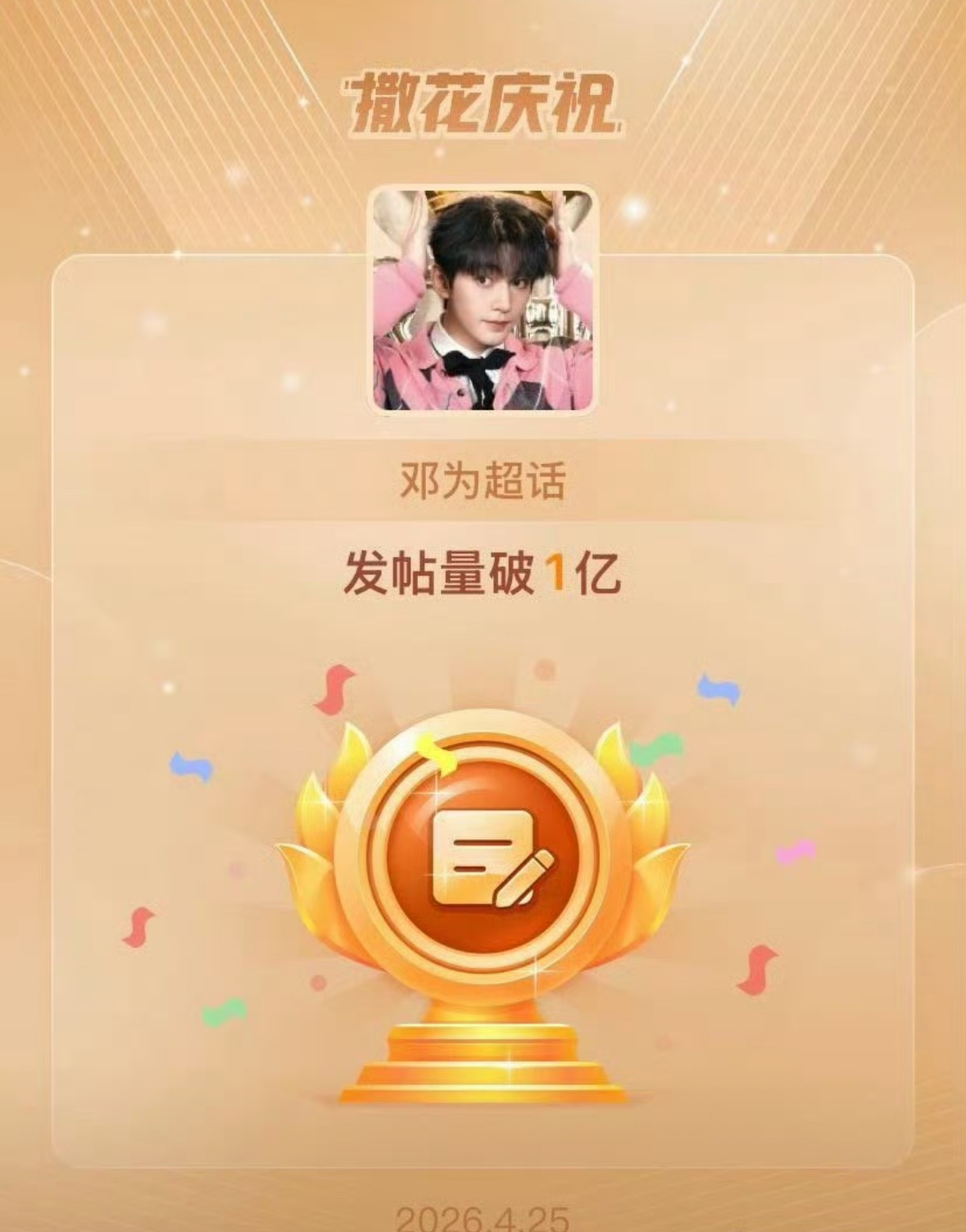 报,邓为超话发帖破1亿,第一个破亿的95生❗