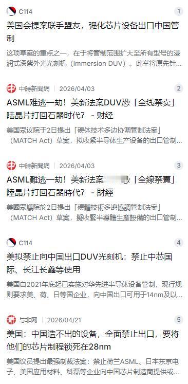 美国彻底摊牌,我们没必要再藏着掖着!美军官马克・米利直言不讳:只要中国想让老百姓过好日子、深耕高科技,就是美国的敌人!这不是他个人牢骚,而是美国高层的真实心思——答案很明确:那个韬光养晦、隐忍发展的时代,彻底结束了! 麻烦看官老爷们右上角点击一下“关注”,方便您进行讨论和分享,感谢您的支持! 2026年4月2日,美国众议院的一纸提案,把中美科技博弈推上了新的临界点。这项名为《硬件技术监管多边协调法案》(MATCH Act)的草案,由两党议员联合提出,核心目标只有一个:联合日本、荷兰,全面禁止向中国出口深紫外光刻机(DUV)——而且是所有型号,一条缝都不留。 这不是以往那种“部分限制”的温水煮青蛙,而是直接掀桌子。法案条款写得明明白白:不仅设备不能卖,连维修、备件、软件升级统统禁止。中芯国际、长江存储、长鑫存储这些中国芯片领域的关键企业被重点点名,全部纳入封锁范围。法案还要求在90天内启动与日荷的专项磋商,建立统一管制清单和联合审查机制,把过去可能存在的转口、代工、技术授权等灰色通道全部堵死。这就是要把中国芯片产业往死里锁。按照美国人的算盘,最好把咱们的技术锁死在28纳米,永远别想碰高端制程。 说实话,这些年美国对中国的打压,早就不是秘密了。从2018年制裁中兴开始,到2019年把华为列入实体清单,再到2020年全面封锁华为获取任何使用美国技术的芯片,一步步升级,一层层加码。但过去好歹还找个“国家安全”的遮羞布,嘴上说着竞争,手上使着绊子。可这回不一样了,美国人连装都懒得装了。 美军前参谋长联席会议主席马克·米利有句话,近来被反复提起:只要中国想过上好日子,想搞高科技,那就是美国的敌人。这话说得一点弯子都不绕,直接把那层窗户纸捅破了。马克·米利可不是什么无名小卒,他是美军最高级别军职的将领,1958年出生,普林斯顿大学政治学学士、哥伦比亚大学国际关系硕士,2019年到2023年担任美军参谋长联席会议主席,是美国总统和国防部长的首席军事顾问。他说出这番话,分量可想而知。 其实米利自己也说过“中国不是敌人”,但那种“竞争对手论”早就是过去式了。现在的美国,尤其是拜登之后到特朗普时期的美国,已经把“战略竞争”直接升级成了“零和绞杀”。你中国人想过好日子,想发展高科技,就是挡了美国的道。这逻辑简单粗暴,但这就是他们真实的想法。从奥巴马到特朗普再到拜登,美国的对华打压从来没停过,芯片禁令、技术壁垒、实体清单,一茬接一茬。这不是个人情绪,这是整个美国政治高层的共识。 米利那句话说白了就是个放大器,把美国这些年对中国的真实态度给放大了、摊开了。以前咱们还指望“韬光养晦、隐忍发展”能争取点空间,现在人家已经明说了:不管你怎么低调,只要你发展,你就是敌人。那还装什么糊涂? 好在中国从来不是被吓大的。面对这样的围堵,咱们的反应不是退缩,而是加速自主创新。华为Mate 60 Pro就是最好的例子。全球权威半导体分析机构TechInsights对这款手机进行了深度拆解,发现它搭载的麒麟9000s处理器,竟然是在没有EUV光刻机的情况下,由中芯国际用7纳米工艺造出来的。TechInsights的副主席丹·哈奇森评价说,这展示了中国半导体产业在没有EUV工具的情况下取得的技术进步,也彰显了中国芯片技术能力的韧性。 专业机构都说了,麒麟9000s的工艺水平虽然跟国际最顶尖的5纳米还有差距,但已经比14纳米强太多了,关键特征尺寸和逻辑门距都达到了7纳米的级别。而且华为Mate 60 Pro的整体部件基本实现了国产化,这在5G智能手机领域意味着突破了被“卡脖子”的困境。说白了,美国把路堵了,中国人自己开了一条新路。 这条路,咱们走得还远远不止芯片。在量子计算、人工智能、新能源这些前沿领域,中国的科研投入从来没有因为外部封锁而手软。2025年,全社会研发投入超过3.92万亿元,基础研究投入占比首次突破7%,达到7.08%。创新指数排名上升到了全球第10位。量子科技和人工智能的研发应用走在世界前列,国产大模型引领全球开源生态。 除了埋头搞科研,中国也在全球范围布局自己的合作网络。“一带一路”倡议已经覆盖了150多个国家和30多个国际组织。2025年,我国与共建国家的货物贸易额达到了23.6万亿元,同比增长6.3%,占整体贸易的比重提升到了51.9%。中欧班列全年开行超过2万列。这条路,靠的不是谁施舍的芯片,而是扎扎实实的基建、贸易和人心相通。 美国人想用封锁把中国困在原地,但他们算漏了一件事:压力越大,反弹越猛。过去我们低调、隐忍、默默积累实力,为的是给自己争取发展空间。但现在外部势力已经不再掩饰,他们不想让我们变强,也不想让我们过上更好的日子。既然美国已经把牌摊在桌上了,咱们也就不用再藏着掖着了。