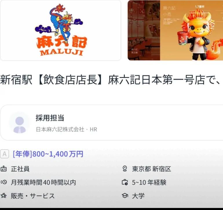 麻六记日本店选址选好! 新宿首店聘店长,年薪最高可达1400万日元,进军海外的步伐终于落地樱花之国。 日本饮食以清淡为主,日本人吃的了那麻辣烫吗?不太看好。就目前中日这关系,看长不了,钱多了烧的,看不清局势。呵呵,生不逢时。这肯定是张兰的主意,别人想不到,也可能是深度合作,缓解两国民间怨气,国家谈国家的,民间先交流缓和局势。