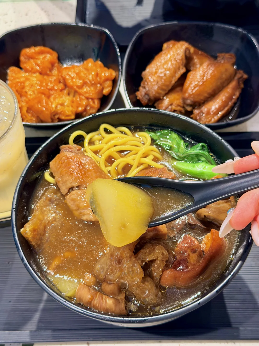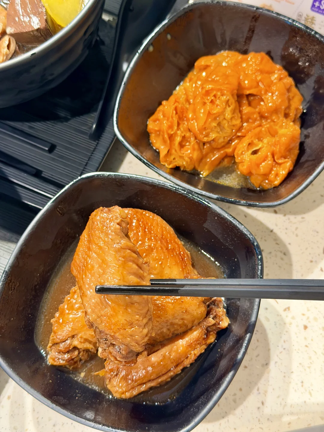 鸡翅卤得透彻入味,外皮软糯,内里肉质鲜嫩,啃起来超过瘾,搭配面条吃幸福感爆棚。[萌萌哒R]