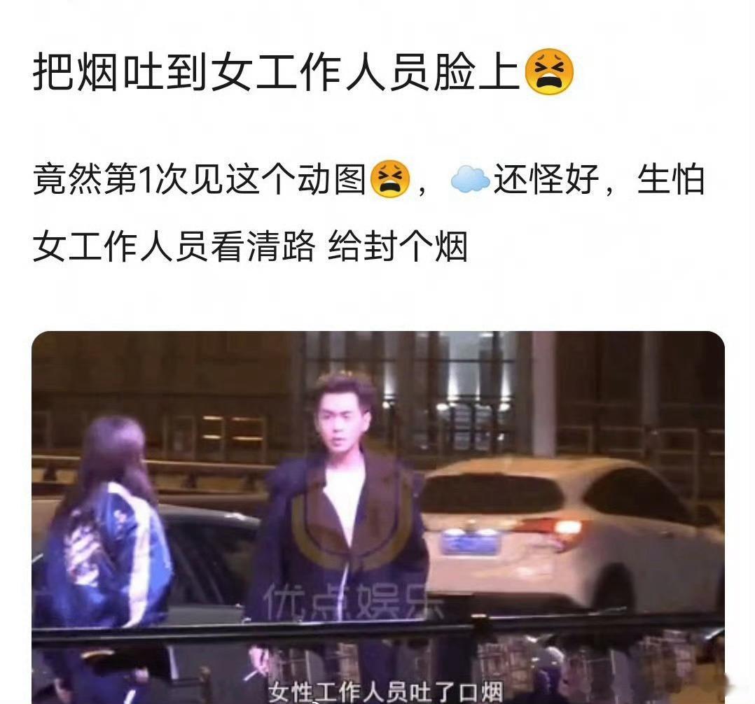 这是无意之间发生的吧,张若昀曾被拍到把烟故意吐到女工作人员的脸上