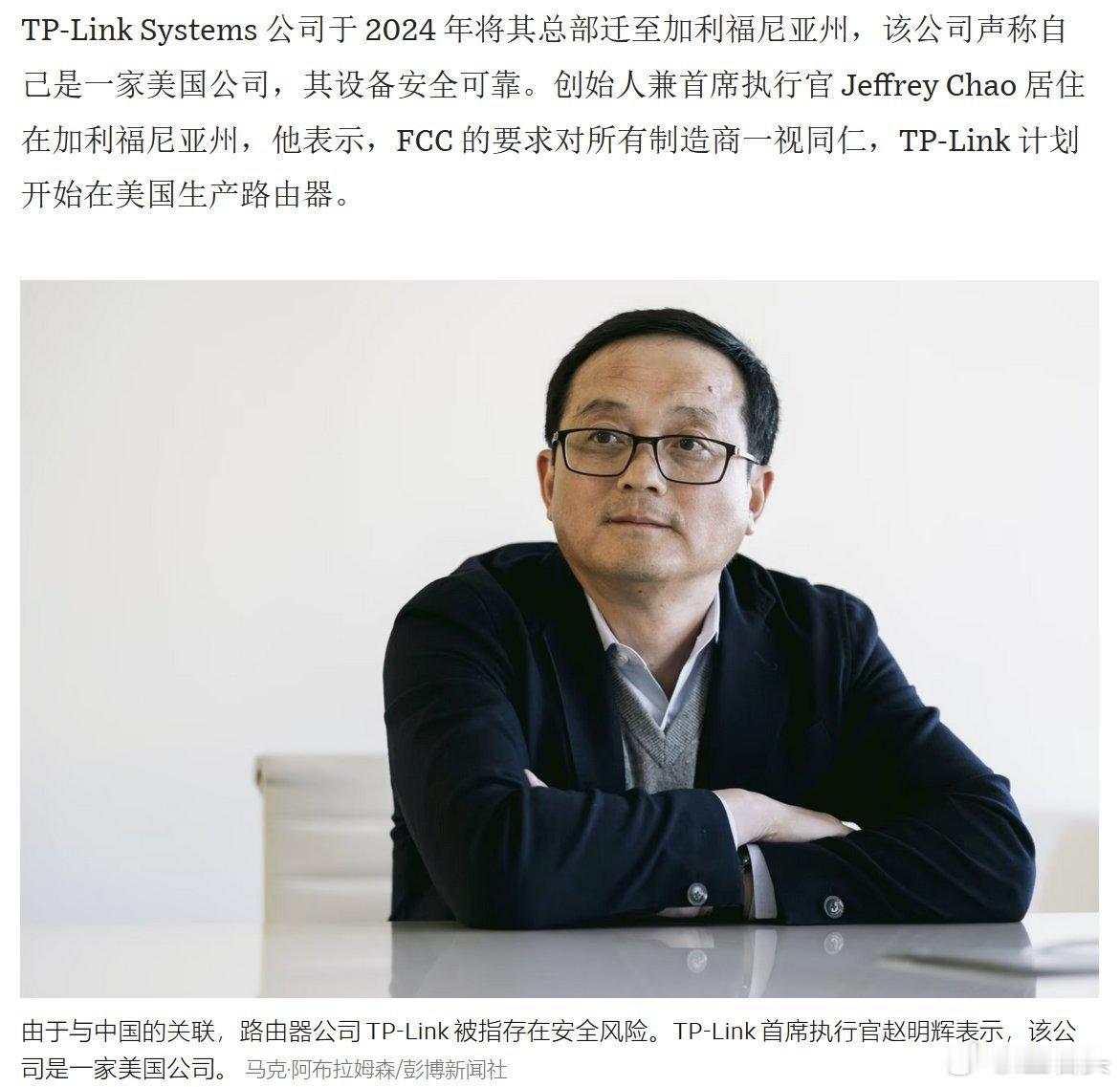 TP-Link Systems于2024 年将总部迁至加利福尼亚州,该公司声称自己是一家美国公司,设备安全可靠。