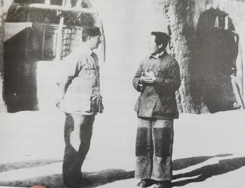 贺龙和毛主席在延安交谈。贺龙和毛主席一样,穿着粗布军装,衣着俭朴。谁能想到,他曾经可是八面威风的贺大帅。贺龙穿大帅服的样子,真是威风。他本来可以过着优裕的生活,不缺大洋,不缺职务。可是为了寻求真理,为了救国救民,贺龙扔掉了大帅服,穿着草鞋,过着食不果腹的生活。能主动放弃富贵生活,而甘于贫贱的,都是伟大的人。