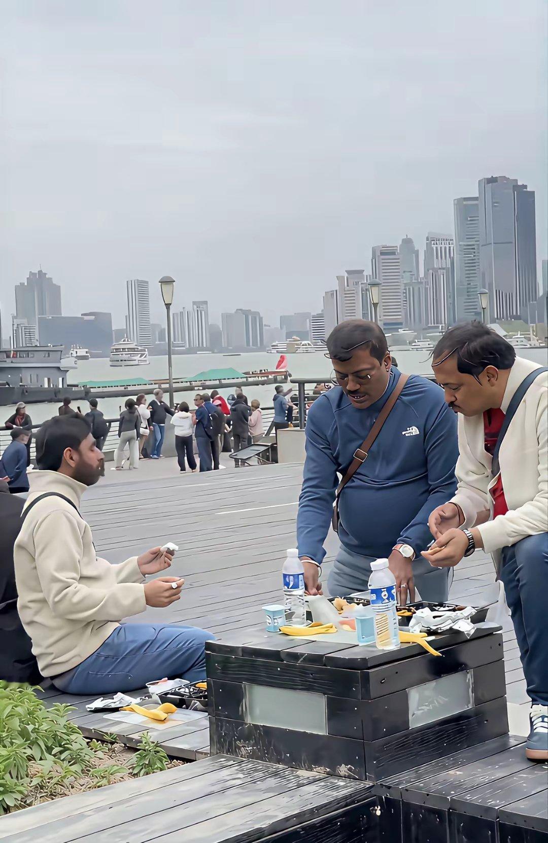 印度人来中国上海旅游,欣赏上海外滩风景,也成为了别人“独特”的风景!