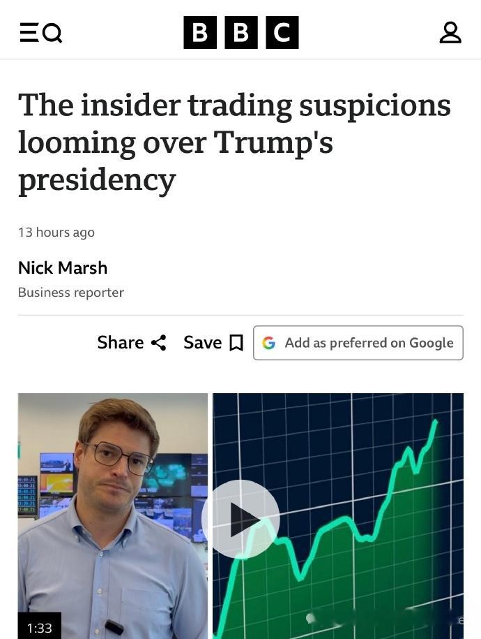 关于特朗普家族在其再次就任美国总统后财富总额迅速增加的话题,今天就暂时不说了,很复杂,仅说一下白宫,通过媒体的报道以及市场变动,即便不能说确定,也可以说白宫内部人员涉嫌利用内幕信息在市场上轻松赚大钱。