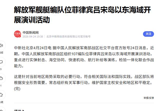 美日澳菲军演遭中方左右夹击,菲律宾急的破口大骂,白宫却一反常态沉默! 24日,107遵义舰为首的编队位菲律宾吕宋岛以东海域开展演训活动,重点进行实弹射击等演练,而辽宁舰为首的航母打击群则在吕宋岛以西演习,与此同时,美菲年度“肩并肩”联合军演20日在吕宋岛拉开帷幕,吕宋岛东西两侧同时出现两支中方主力舰队,“左右夹击”态势已然形成。 4月24号一早,南部战区就放出消息,由055型万吨驱逐舰遵义舰带着的107编队,跑到吕宋岛东边那片海域搞远海演训去了,这编队可不简单,除了遵义舰这个“大块头”,还有护卫舰、补给舰啥的跟着,就像一支装备精良的“远征军”。 这次演训内容可丰富了,实弹射击、海空一起配合、快速机动这些科目都有,就是要看看大家在一起打仗的时候能不能配合好。 而且这次中国海军说话也硬气,直接说这是“针对当前地区局势采取的必要行动”,和以前那种“不针对任何特定国家”的客气话完全不一样。 遵义舰为啥选在吕宋岛东边呢?这地方可关键了,它是美军在第一岛链防御体系里的“软肋”,海域又大又深,大船跑起来特别方便。 遵义舰本身就是个“狠角色”,它满载排水量超过1.2万吨,身上有112个垂直发射单元,就像112个“小炮筒”,能装防空、反舰、反潜、对陆打击等各种导弹,啥活都能干。 遵义舰编队携鹰击 - 21高超音速反舰导弹,威力慑人,该导弹射程逾1000公里,速度达6马赫,令美军航母生畏。编队驻停此地,美菲内心难免惶恐难安。 就在遵义舰编队在东边忙活的时候,辽宁舰航母打击群也没闲着,在吕宋岛西边的南海海域搞起了大动作。 辽宁舰编队选的位置也很有讲究,正好在美菲军演的核心区域,它的航迹把巴士海峡、黄岩岛周边这些敏感水域都覆盖了,就像给美菲军演围了个“大圈子”。 这可不是简单的“路过”,而是在实战环境下练练手,看看舰队之间怎么配合、情报怎么共享、后勤怎么保障这些关键问题。 中国海军这一“左右夹击”,可把美菲军演的参与者给整懵了,美国本来想通过这场军演在亚太秀秀肌肉,拉上日本、澳大利亚这些盟友,搞个“亚洲小北约”,还选在《马关条约》签订周年这天,想在历史上给自己找点“正当性”,可没想到中国海军突然杀出来,让这场精心准备的军演变了味。 日本在这次军演里可积极了,派了1400人,还把“伊势”号直升机航母、“雷”号驱逐舰和88式反舰导弹这些先进装备都带来了,日本此次演习竟拟用88式反舰导弹击沉靶船,此举意义重大。 这是其战后首次于境外动用进攻性武器,释放出危险信号,着实值得我们高度关注并保持警惕。 可当遵义舰编队在东边实弹射击的时候,日本舰艇吓得都不敢乱动,生怕一不小心就闹出大麻烦。 澳大利亚、加拿大这些国家就更谨慎了,它们的船一直和中国海军保持着安全距离,不敢和中国海军正面硬刚,菲律宾心里更是矛盾,小马科斯政府想通过军演找外部势力撑腰,好解决国内的政治问题。 可中国海军这么强大,菲律宾老百姓可不干了,4月23号,马尼拉好多人都上街抗议,要求取消军演,说政府这是“引狼入室”,小马科斯政府这下可尴尬了,想继续军演吧,怕惹恼中国;想取消吧,又怕被美国和其他盟友笑话。 和菲律宾的着急上火不一样,白宫这次特别安静,以前只要南海有点风吹草动,美国肯定第一时间跳出来说话,支持盟友、警告对手。 可这次,从特朗普到五角大楼,都没对中美海军的“对峙”发表任何看法,这背后的原因其实很简单,美国现在有点“心有余而力不足”。 现在美国在中东那边正忙得不可开交,3艘航母战斗群都被困在伊朗周边,西太平洋这边根本没多少兵力,为了维持表面上的军事存在,美国只能靠盟友帮忙,可日本、澳大利亚这些国家也不傻,不会真的为美国拼命。 而且中国海军这些年发展得太快了,航母、大驱、导弹啥的新装备一个接一个,美国在亚太的军事优势越来越小,在这种情况下,白宫选择沉默,就是不想把事情闹大,免得自己下不来台。 这场发生在吕宋岛周边的军事较量,可不是简单的船和导弹的比拼,背后藏着好多大国的战略想法,从中国这边看,这次行动就是对美菲挑衅的强硬回应,也是对中国海军实力的一次自信展示。 两栖攻击舰、万吨大驱这些新装备越来越多,实力越来越强,这次“左右夹击”的布局,一方面是给美菲军演一个下马威,另一方面也是在实战里练练兵,看看中国海军在远海作战的时候到底行不行。 对于菲律宾来说,这次事件就是个教训,小马科斯政府想靠拉美国进来给自己捞好处,却没想到会惹出这么大的麻烦,中国海军这么强大,就是在告诉菲律宾:别想着靠美国来欺负中国,要是真把中国惹急了,肯定没好果子吃。 菲律宾要是想真正保护自己的利益,就别再搞那些“倚美制华”的小把戏了,还是老老实实地和中国对话协商吧。