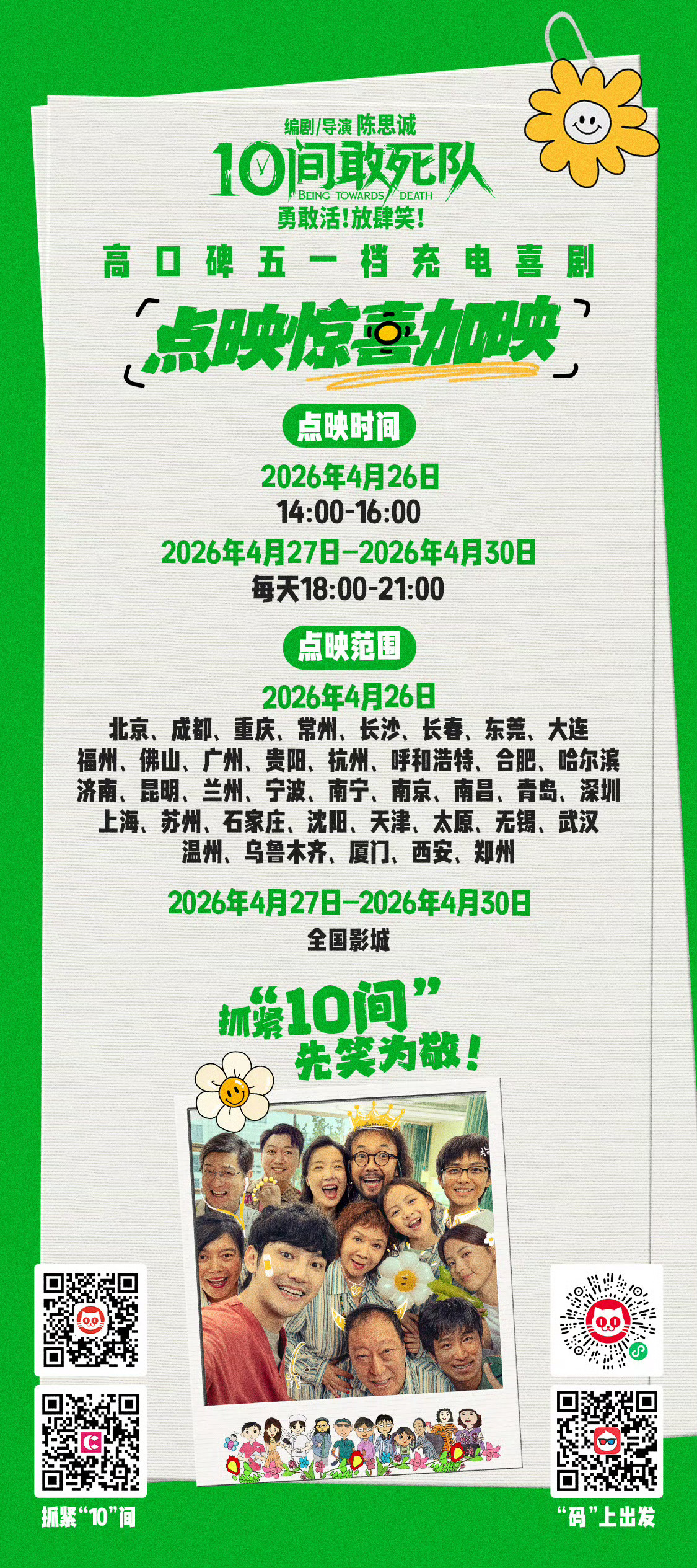 电影10间敢死队点映惊喜加映明天点映范围扩大,下周工作日全国开点,拯救工作日的市