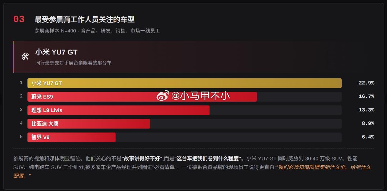 北京车展,最受参展商工作人员关注的车型:小米 YU7 GT