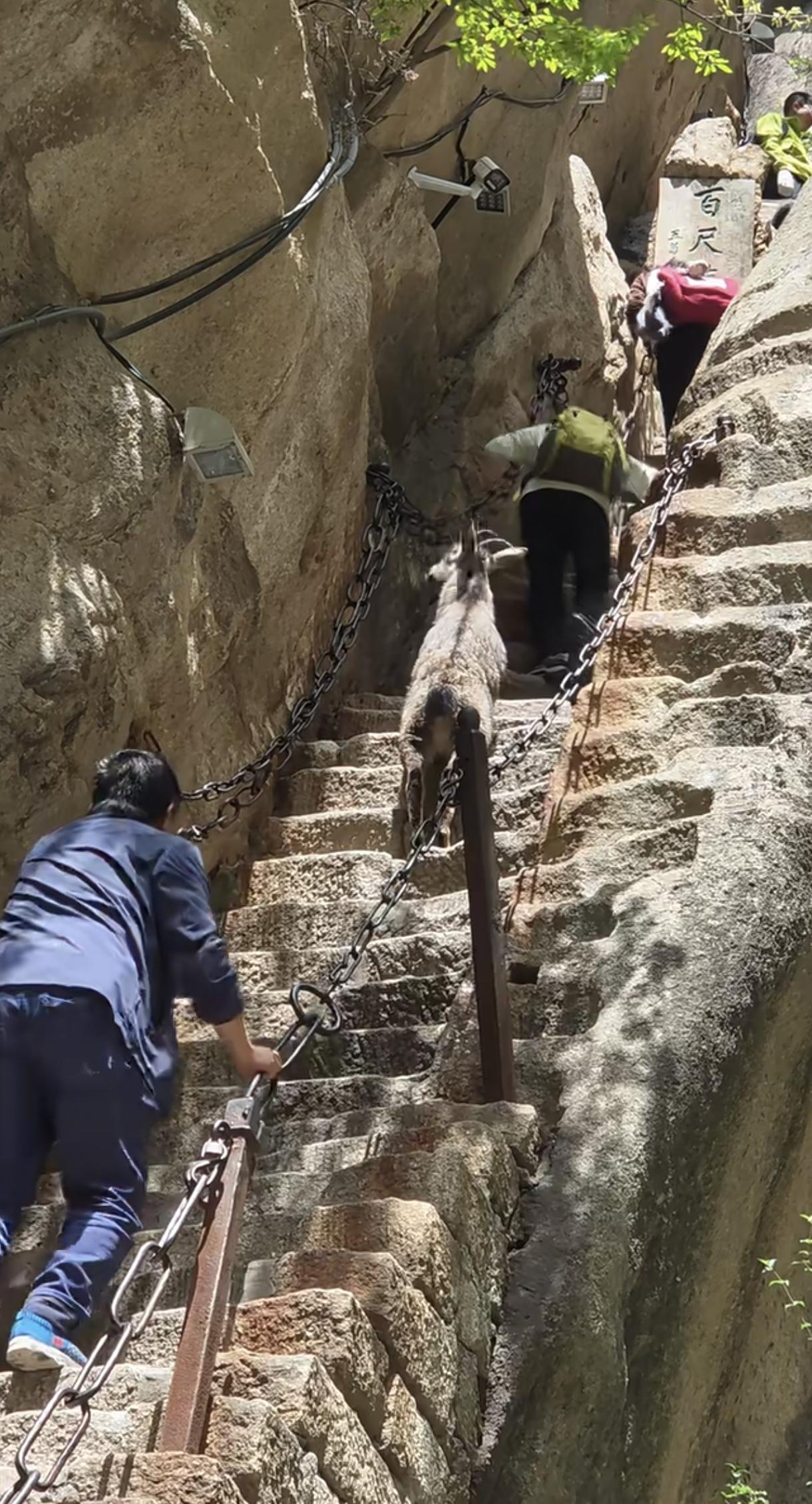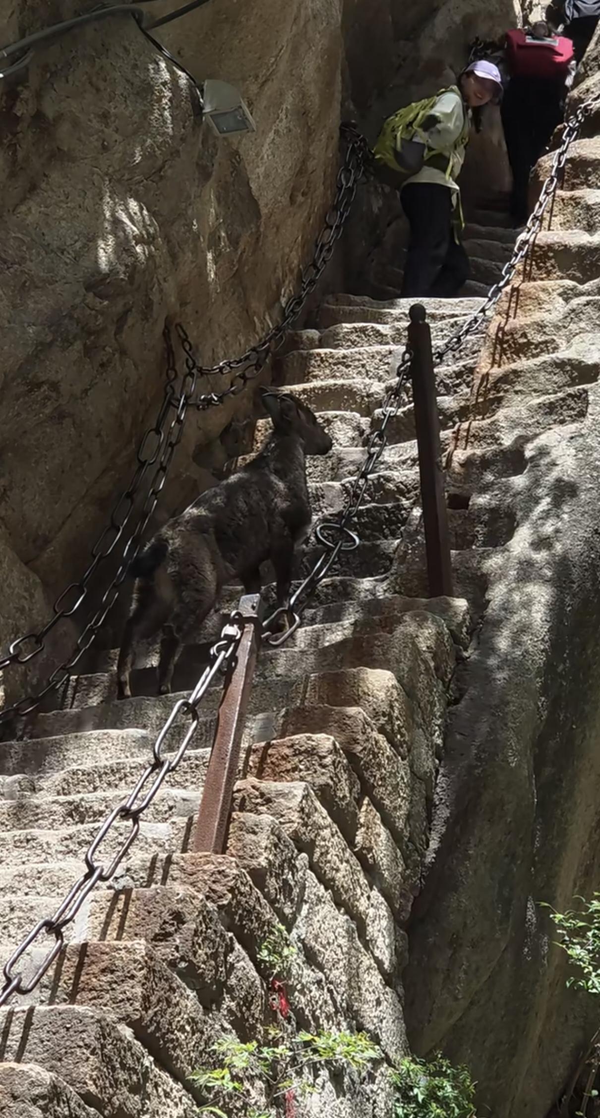 羊:愚蠢的人类,爬那么慢,我都堵车了。好灵活矫健,全时四驱。哈哈哈没办法人只用两条腿[吐舌]论攀爬能力,人类根本不是动物的对手。她好乖哦,还乖乖排队。
