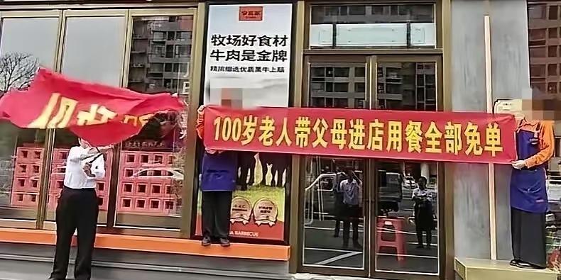 这年头做生意 为了引流真是越来越卷, 山西这家烤肉店的宣传标语,直接把网友都给整乐了。 店里打出标语,只要百岁老人带着父母来吃饭,全场直接免单。 明眼人一看就知道,这根本就是一句不可能实现的玩笑话。 百岁老人还要有父母陪同,现实里几乎不存在,说白了就是妥妥的营销套路。 店家自己也大方承认,就是想用这种好玩的梗来博取关注度,免费给门店做一波热度宣传。 其实现在很多实体店都陷入了误区,总想着靠奇葩噱头博眼球。 但真正能留住顾客的,终究还是实惠的价格和过硬的口味。 靠这种有趣但虚无的段子引流,热度来得快去得也快,很难沉淀下真正的回头客。 大家觉得,餐饮店靠这种玩笑式宣传吸引流量,算是聪明营销还是过度博眼球呢?新疆烤肉店广告 老铺涮肉广告语 炭火烤肉店广告 烤肉营销 西塔烤肉店广告 道义烤肉店广告 豫疆来烤肉店