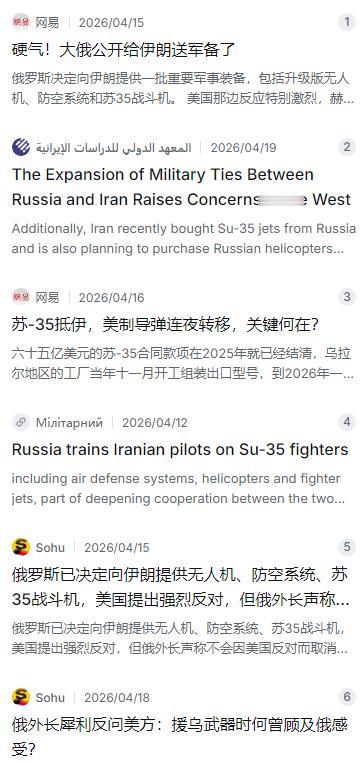 全球都在盯住霍尔木兹的炮火时,俄罗斯突然把65亿美元的军售单子拍到伊朗桌上,直接打了美国一个措手不及。这不是一般意义上的“卖东西”,而是抢在华盛顿面前亮出了一记硬招。 麻烦看官老爷们右上角点击一下“关注”,既方便您进行讨论和分享,又能给您带来不一样的参与感,感谢您的支持! 2026年4月,霍尔木兹海峡一带的局势可以说一天比一天紧张。美军“斯普鲁恩斯”号驱逐舰在4月19日直接朝着一艘驶往伊朗阿巴斯港的货船开炮,还把船给扣了。这下可好,伊朗那边也不是好惹的,最高国家安全委员会很快放出话来:海峡的通行权要牢牢攥在自己手里,直到战争彻底结束。与此同时,特朗普还在社交媒体上放狠话,说美国已经“完全控制了霍尔木兹海峡”。算上被派往中东的“布什”号航母打击群,波斯湾水域的气氛比任何时候都要凝重。 就在全世界的注意力都被这片炮火连天的水域吸引过去的时候,俄罗斯那边却悄无声息地放出来一个重磅消息——直接把价值65亿美元的一揽子军售合同拍在了伊朗的桌上。这可不是一般意义上的“卖东西”,而是在华盛顿的眼皮子底下抢了个先手。俄罗斯外长拉夫罗夫的措辞非常耐人寻味,用的词不是“计划中”也不是“正在商谈”,而是“正在提供”。外交官说话什么时候用这种时态?那就是货已经送到手了,我就是出来补个手续的意思。 这份军售合同具体包括48架苏-35重型战斗机、500套“韦尔巴”便携式防空导弹发射装置、2500枚配套导弹和一批升级版无人机,外加500套夜视瞄准镜。65亿美元这个数可不是小数目,而且是军工出口的大单子。伊朗这边在2025年就已经把款项结清了,俄罗斯乌拉尔地区的工厂同年11月开工组装出口型号,到了2026年1月底,首批12架苏-35就直接飞抵伊朗中部的哈马丹基地。 而且这批飞机不是运过去封存起来等着条件成熟再启用的,而是落地就进入作战整备流程。飞行员直接上机实弹考核,雷达和地面防空网进行联调,甚至连弹射座椅都针对伊朗空勤人员的身体数据做了重新适配。这个节奏跟俄罗斯之前对缅甸军政府那种“先签意向书再拖个两三年”的套路完全不同,说明莫斯科这次给德黑兰的优先级排得非常靠前。 苏-35被称为四代半重型战斗机确实不是吹的。它配备的那款雷达最大的特点就是对高空和远距离目标的探测能力很强,可以同时跟踪30个空中目标,还能引导导弹攻击其中8个。这还不是全部。俄罗斯方面可能还会给这批苏-35配上“希比尼-M”电子战吊舱,以及射程好几百公里的R-37M超远程空对空导弹和KH-59MK2空射巡航导弹。一旦这48架飞机全部到位,伊朗空军在中东地区的战斗力就不是提升一个档次的问题了。 不过话说回来,苏-35固然抢眼,但另一笔交付其实更值得关注。500套“韦尔巴”便携式防空导弹发射装置和2500枚配套导弹已经入库德黑兰外围。“韦尔巴”这个系统是俄罗斯在2010年代末定型的第四代单兵防空系统,它有一个其他便携式导弹比不了的本事:配备了紫外、近红外和中红外三个波段的光学导引头。这玩意儿对低空慢速小型目标的捕获概率极高,尤其是专门用来对付那些低空低速飞行的无人机,就算在夜间的复杂热源背景下也能锁定目标。 伊朗为什么这么着急要这种看起来不太起眼的东西?因为2025年美以联合行动暴露出来一个致命的短板。那轮军事打击精准地干掉了好几个S-300远程防空阵地,但真正让伊朗军方后怕的不是那些飞过来的巡航导弹,而是在打击之前长时间盘旋在低空的美制无人侦察平台。正是这些无人机锁定了S-300雷达的开机信号,才让后续的打击弹无虚发。换句话说,伊朗的防空体系不是输在“盾”不够大,而是输在“盾”的眼睛被低空渗透的小飞虫给遮住了。“韦尔巴”就是专门用来对付这些小飞虫的。 伊朗为什么能拿到俄罗斯这么高的合作优先级?这就不得不提沙赫德系列无人机了。从2022年秋天开始,伊朗向俄罗斯战场持续输送低成本的沙赫德自杀式无人机,在乌克兰前线消耗了上千架。俄军拿到实战数据后并没有藏着掖着,把改进后的飞控方案、抗电子干扰的核心模块以及更耐用的小型涡喷发动机零部件都回流到了德黑兰的研发机构。这种关系根本就不是传统的你买我卖的军贸模式,更像两个工程团队共用一个实验室,只不过这个实验室恰好是一个真实的战场。双方在对方身上都押了重注,谁也撤不出来,这才是苏-35能这么快、这么顺利交付的真实背景。 俄罗斯选择在这个时间点对伊朗进行大规模军售,背后的算盘打得很精。首要目的就是打破美国的经济、金融和军事制裁包围圈,用行动向全世界宣告,美国的制裁并不是什么万能钥匙,更不是谁都怕的。