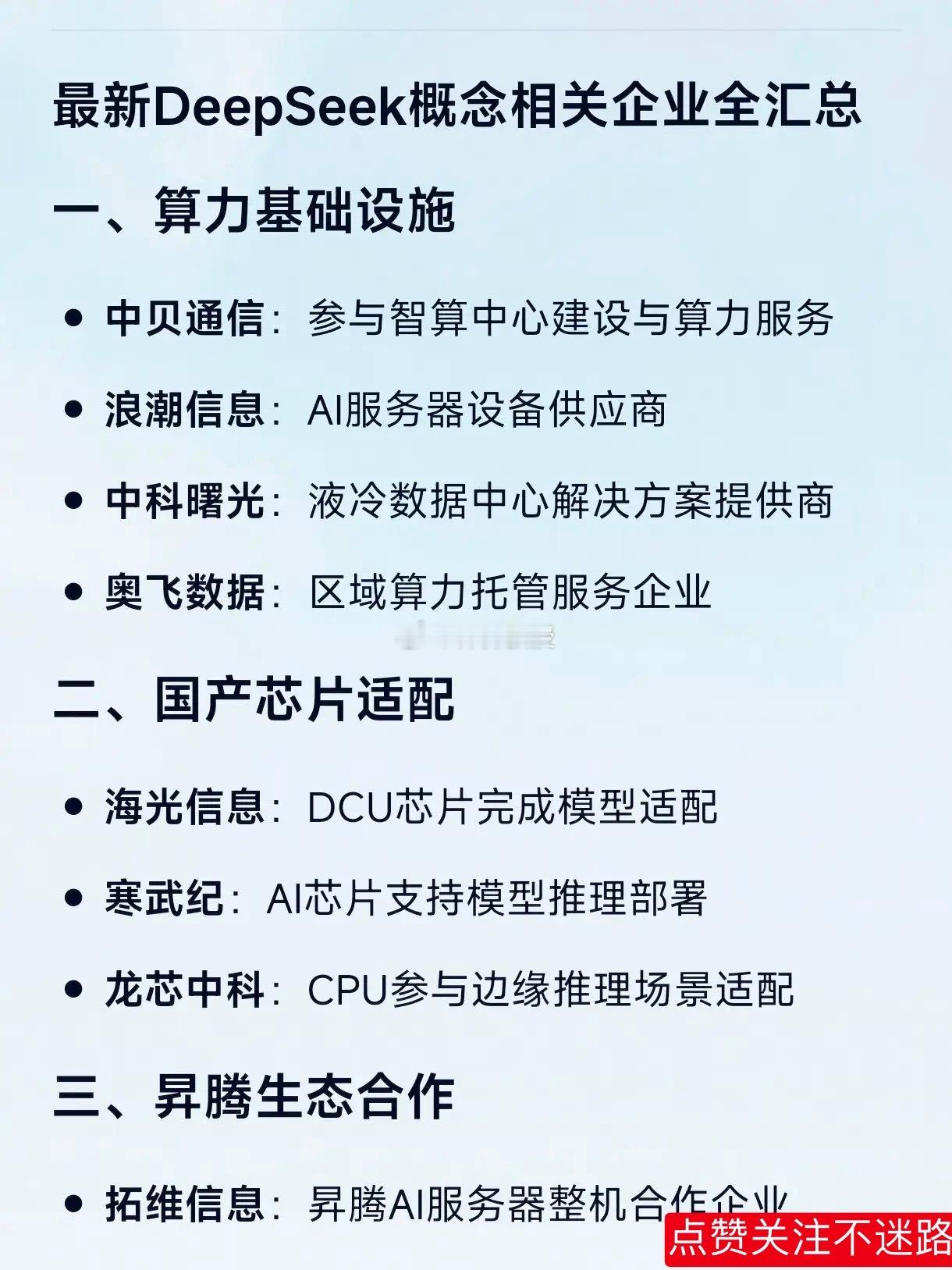 最新DeepSeek概念相关企业全汇总一、算力基础设施中贝通信:参与智算中心建设