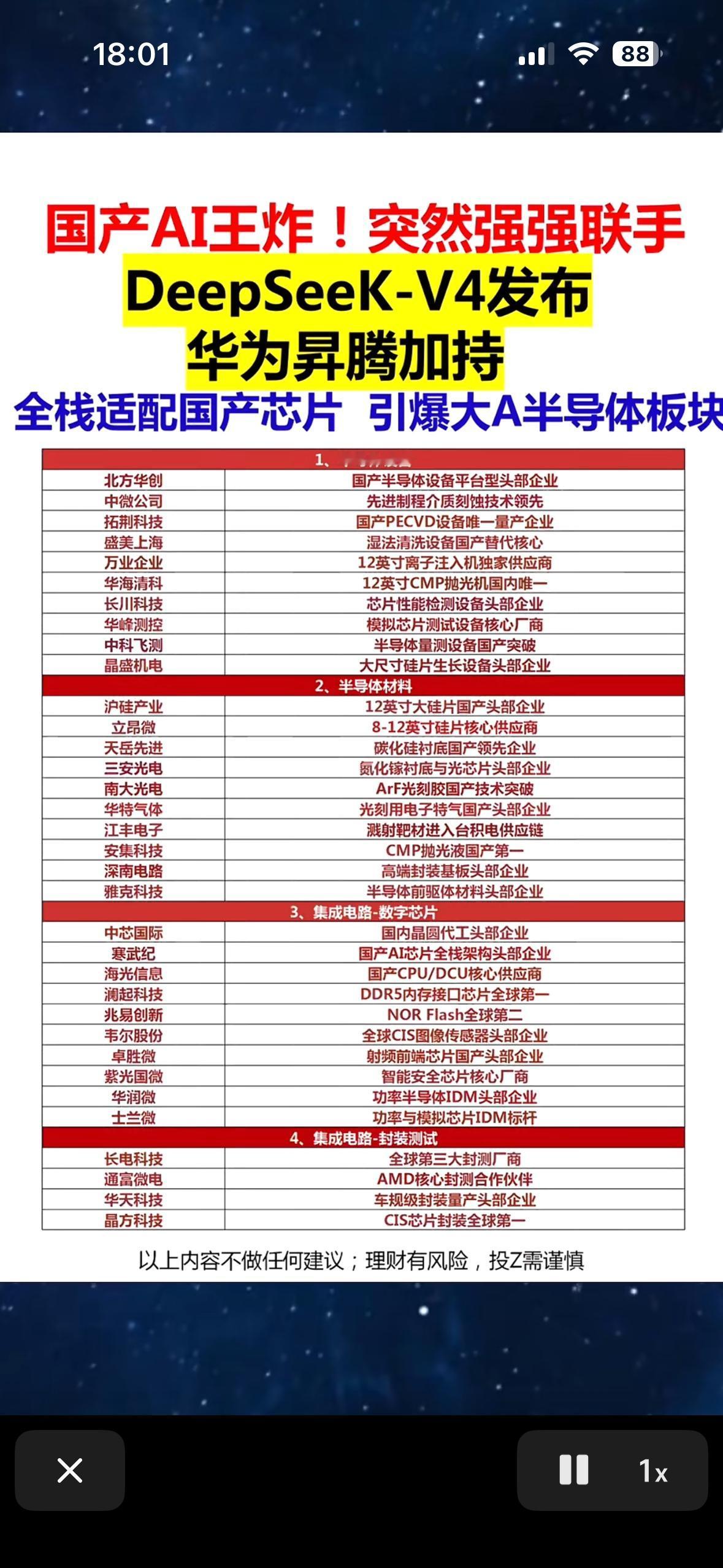国产AI与芯片产业爆发,华为昇腾助力半导体全链崛起,设备材料封测多领域突破,龙头企业领跑国产替代新浪潮。 国产AI与芯片产业最近那真是大爆发!华为昇腾在其中起到了关键作用,助力半导体全产业链崛起,设备、材料、封测等多个领域都有突破。 从投资逻辑看,国产替代是刚需,政策全力护航,海思作为国产芯片设计龙头优先受益。技术上,海思在麒麟、昇腾等芯片持续迭代,产能逐步回暖。生态方面,鸿蒙生态等四大场景共振,带动订单爆发。 比如长电科技,作为封测绝对龙头,是海思昇腾、麒麟封测核心供应商,产能利用率超90%,业绩弹性大。还有ABF膜领域,原本被日本垄断,国内自给率不足5%,但华为昇腾供应链加速国产化,让这一“卡脖子”环节迎来突破窗口,4家龙头已悄悄卡位。龙头企业正领跑国产替代新浪潮,未来可期!