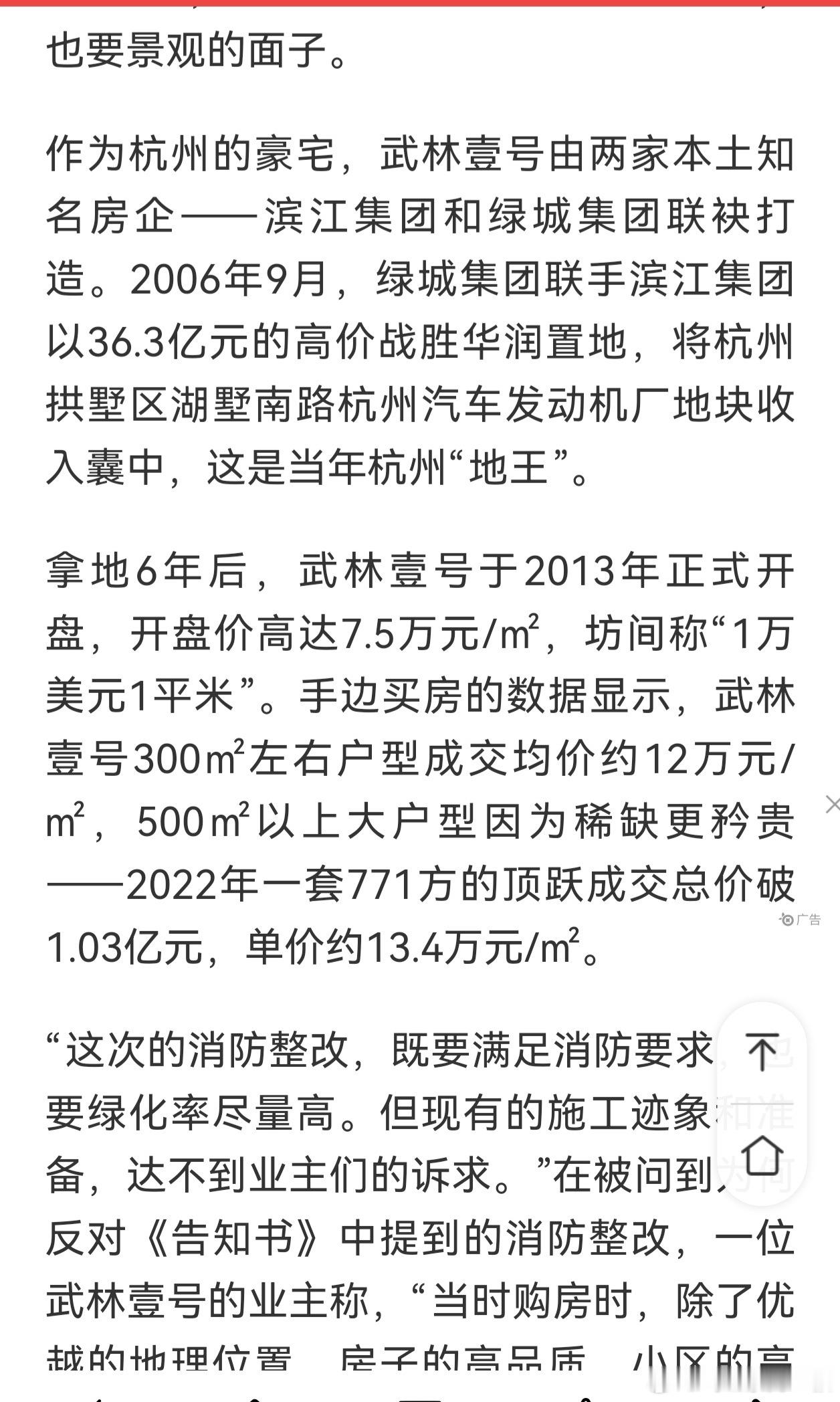 我再举个例子,杭州的核心区域的核心豪宅。武林壹号。2016年的开盘价7.5万,现在价格大约10万左右。高的时候到过12~13万,但是很难成交(那个时候是杭州高点,武林壹号成交也很难)。