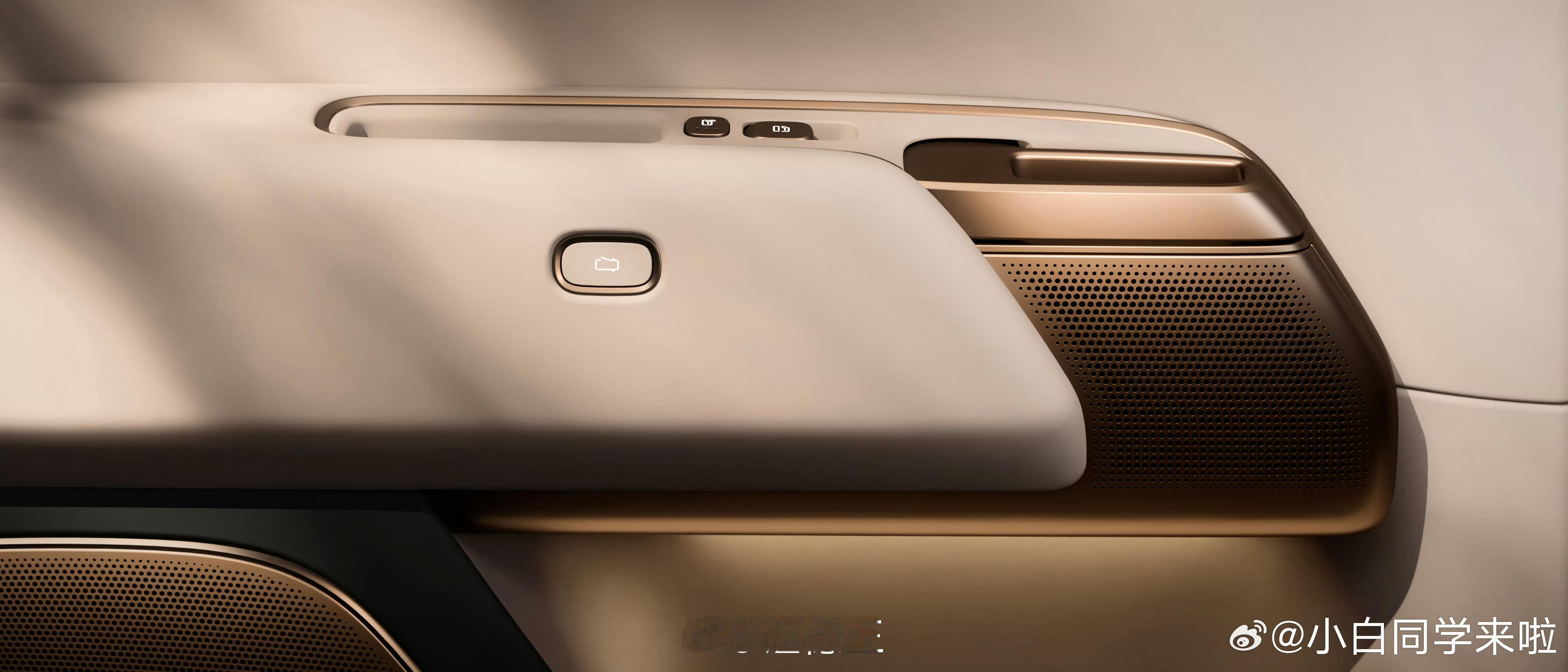 - 后排控制大屏也有了,MEGA 扶手上的控制键也下放给L了;