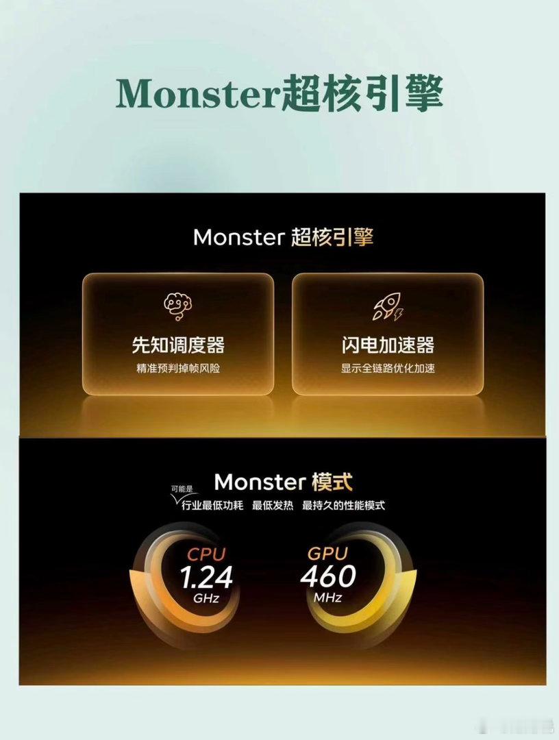 还有Monster超核引擎加持,先知调度器精准预判不掉帧,再加上骁龙8 Elite Gen5旗舰芯和7000mAh大电池+100W快充+无线充,性能、续航、充电全都不拖后腿,超声波指纹也安排上了,细节直接拉满!