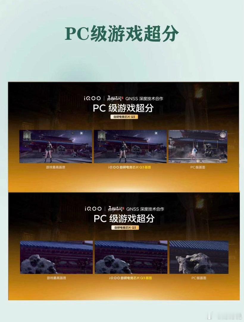 先上王炸——自研电竞芯片Q3!不仅性能拉满,还能直接实现PC级游戏超分,看《永劫无间》的画质对比,细节直接拉到和PC版看齐,这画质提升真的肉眼可见!更狠的是,它能做到2K+144帧超分超帧并发,打《穿越火线》这类游戏,画面流畅度直接起飞,完全没有以前高刷和高画质不能兼得的烦恼。而且它现在已经适配了180+款游戏,这生态直接拉满了!