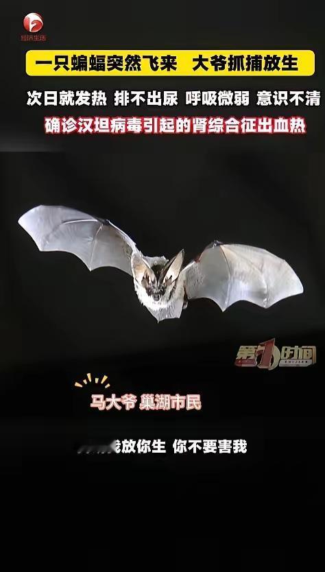 “悲剧还是发生了!”近日,安徽巢湖,一位大爷发现家中进了只蝙蝠,他伸手就去抓,可蝙蝠直接冲向了他的面部,大爷徒手抓住,在那儿碎碎念,我放你生,你不要害我,可没想到第二天大爷就病了,被送去医院抢救!网友:徒手,怎么敢的呢? 事情发生在4月的一个晚上,巢湖的夜色格外安静,马大爷在家中休息时,突然发现卧室里闯进了一只不速之客,一只蝙蝠,这只蝙蝠没有到处乱飞,只是蜷在窗帘的褶皱里一动不动,看着也没有攻击性。 马大爷素以心地善良著称,瞧见这只蝙蝠并无伤害之意,他心中所想,不过是将其请出家门,给它一个重获自由的机会,放它生路罢了他,一时疏忽未戴手套便径直伸手去抓窗帘褶皱中的蝙蝠,他全然未察觉这看似善意之举,实则暗藏致命危险。 马大爷望着手中挣扎的蝙蝠,并未伤害它只是喃喃自语,大意是放它一条生路,望其莫害自己,念叨罢,他寻物将蝙蝠装好,踱步至窗边开窗将其放生,彼时马大爷颇为欣慰,自觉做了桩善事,既未伤害小动物,又化解蝙蝠入室之扰,却不曾料到那短短几秒的徒手触碰,已在他体内种下致命隐患。 当晚临睡前,马大爷察觉胸口与后背有些许发热,他顺手照镜,见身上皮肤微微泛红,却未在意,只当是遭蚊虫叮咬或偶感风寒,简单擦拭后便上床歇息,全然没放在心上,当天晚上睡前,马大爷就感觉到胸口和后背有些发热,他随手照了照镜子,发现身上的皮肤微微发红,但他没当回事,只以为是晚上被蚊子咬了,或者是有点着凉,简单擦了擦就上床休息了,压根没往心里去。 可谁也没想到这仅仅是暴风雨前的静默,危险正在慢慢逼近,第二天中午,马大爷的症状突然急转直下,浑身滚烫发着高烧,一点力气都没有,连走路都摇摇晃晃,站都站不稳,只能勉强靠着墙休息。 到了下午更严重的情况出现了,马大爷开始尿不出来,呼吸也变得十分困难脸色苍白,意识也渐渐模糊,家人这才彻底慌了神,连忙追问之下,马大爷才虚弱地说出,自己前一晚徒手抓过蝙蝠的事。 家人不敢耽搁,赶紧找车,火急火燎地把马大爷送到了安徽医科大学第四附属医院的急诊科,医生一看到马大爷的状态,脸色瞬间就变了,他意识模糊,呼吸微弱,脸上、脖子上、胸口的皮肤都弥漫性发红,看着十分吓人。 医生连忙追问马大爷的接触史,当听到他徒手抓过蝙蝠后,忍不住倒吸一口凉气,初步判断高度怀疑是感染了汉坦病毒,随后的进一步检查,证实了医生最坏的猜测,马大爷患上了肾综合征出血热。 这病听着很陌生,杀伤力却大得惊人,医生说汉坦病毒不一定要通过咬伤传播,它可以通过气溶胶传播,比如蝙蝠的粪便、尿液、唾液干燥后,被人吸入体内,也可以通过破损的皮肤接触蝙蝠的体液入侵人体,病毒会专门攻击血管内皮细胞,导致全身微小血管渗漏。 马大爷身上看似简单的皮肤发红,其实是体内大出血的前奏,而他尿不出来的症状,更是肾脏微血管崩溃的信号,肾功能衰竭意味着身体里的代谢废物和钾离子排不出去,高钾血症随时可能让心脏骤停,情况十分危急。 医生没有丝毫耽搁,直接把马大爷推进了ICU进行抢救,还对家属说了一句让人揪心的话:再晚来几个小时,人可能就没了,接下来的整整7天,马大爷一直在生死边缘徘徊,医护人员全力救治, 家人们也在外面焦急等待,好在最后马大爷终于从鬼门关里被拽了回来,肾脏慢慢恢复了功能。 劫后余生的马大爷,回想起来满是后怕,他怎么也没想到,自己只是伸手抓了一下蝙蝠,就差点把命搭进去,这件事传到网上后,网友们炸开了锅,大家纷纷留言,语气里满是不解和担忧,直呼“徒手抓蝙蝠,怎么敢的呢?” 其实马大爷的遭遇并不是个例,之前也有过很多类似的案例,有人徒手抓蝙蝠没消毒,几天后发烧感染住院,有人徒手捞马桶里的蝙蝠被咬,花了上千块打血清和疫苗,还有人因此失去了生命,这也提醒大家,遇到蝙蝠这类野生动物,千万不要慌更别直接上手,保持敬畏不碰不伤害,才是对自己和家人最基本的负责。 (来源:安徽经视、合肥晚报官方媒体报道)